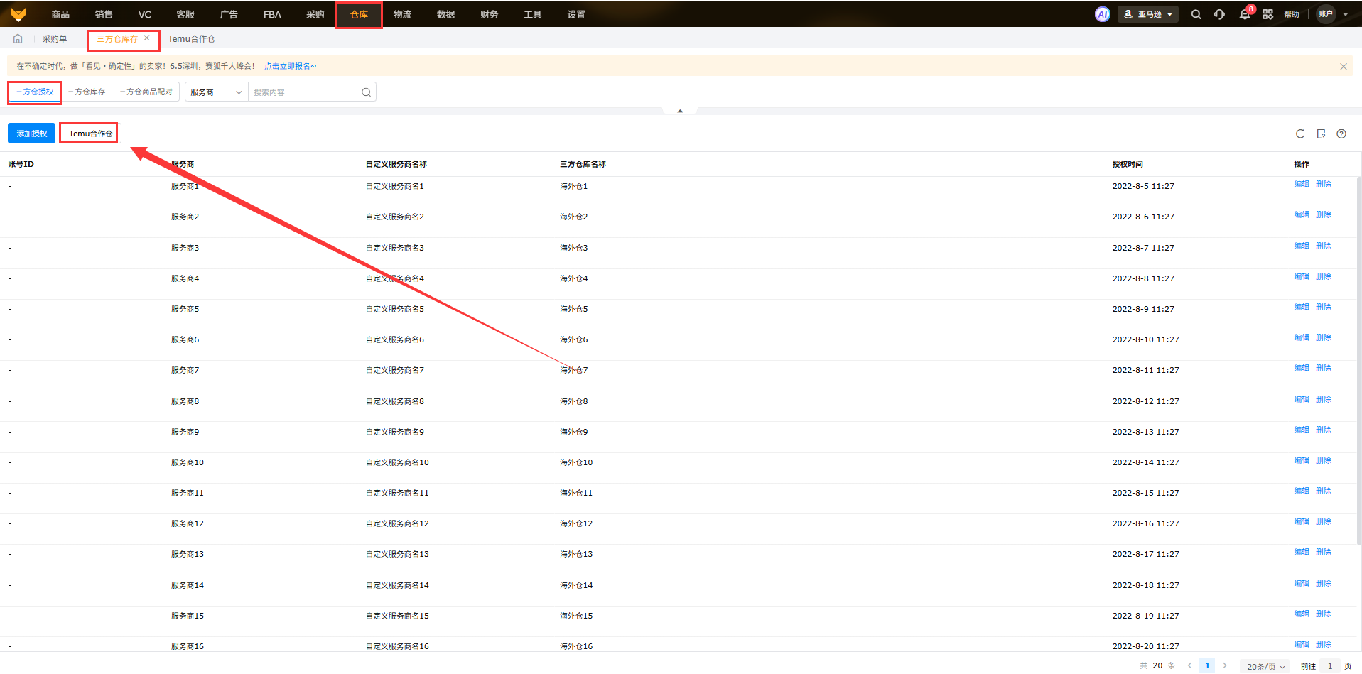2、三方仓授权