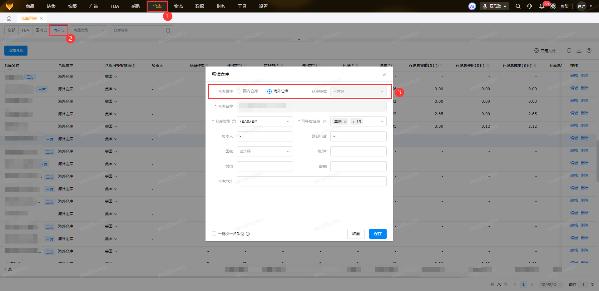 方仓授权成功,则开启仓库成功,【仓库列表】模块新增一条海外仓仓库数据,默认仓库属性为【海外仓】,仓库模式为【三方仓】;