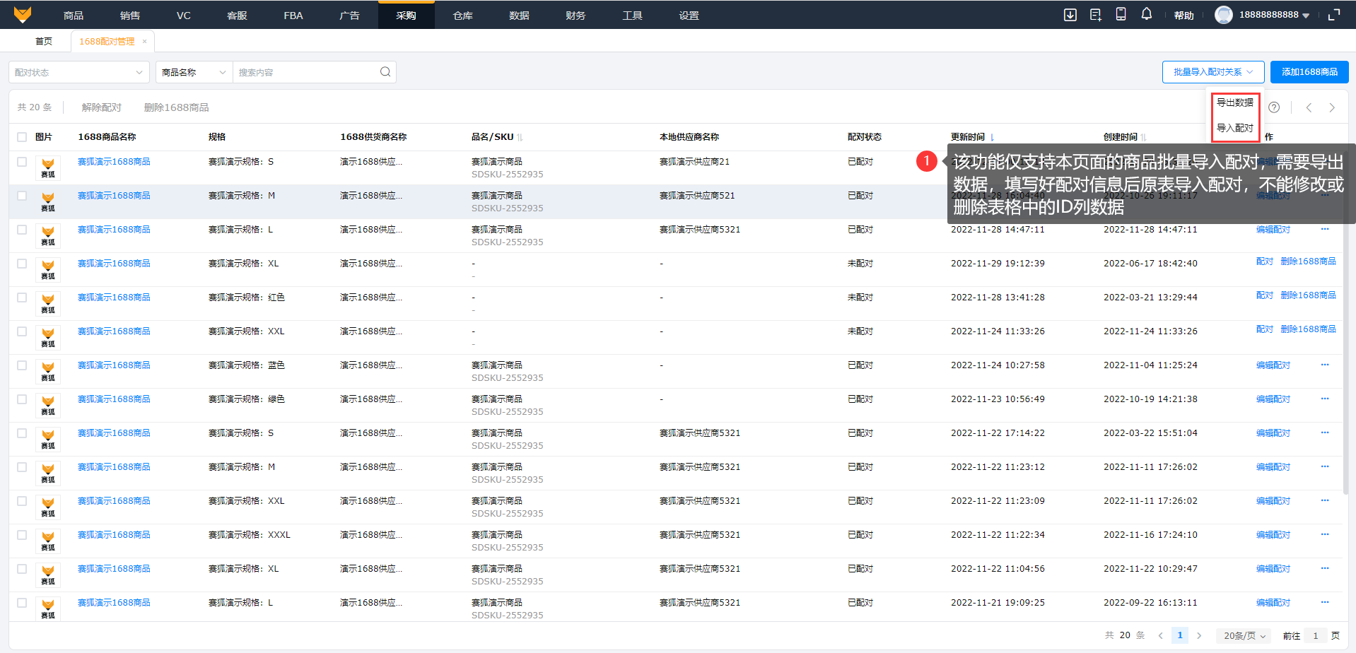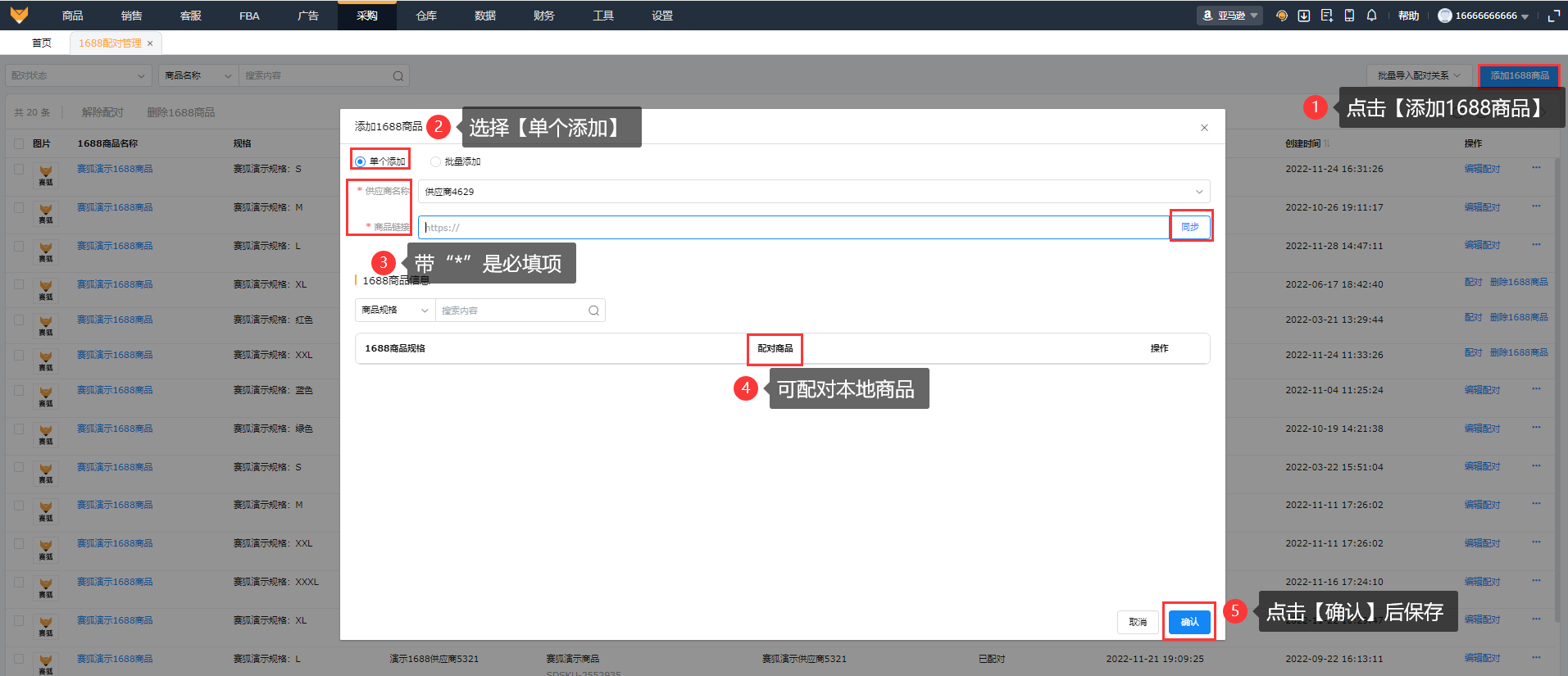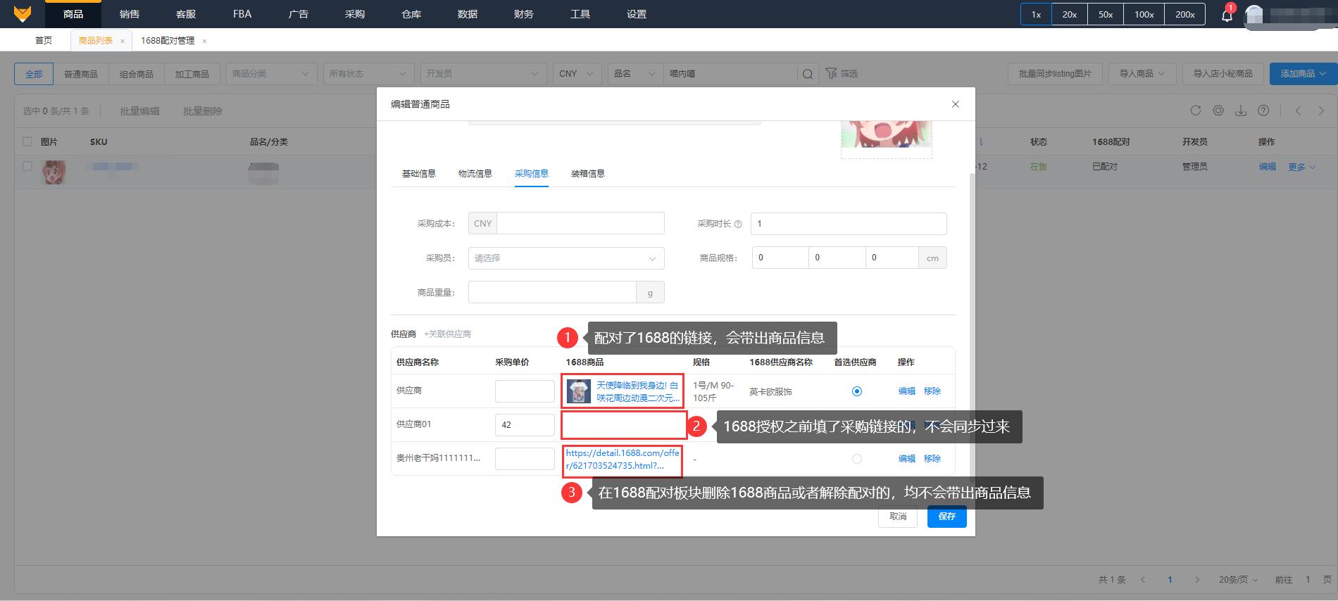 在商品列表进行1688配对后会同步到1688配对管理板块;
