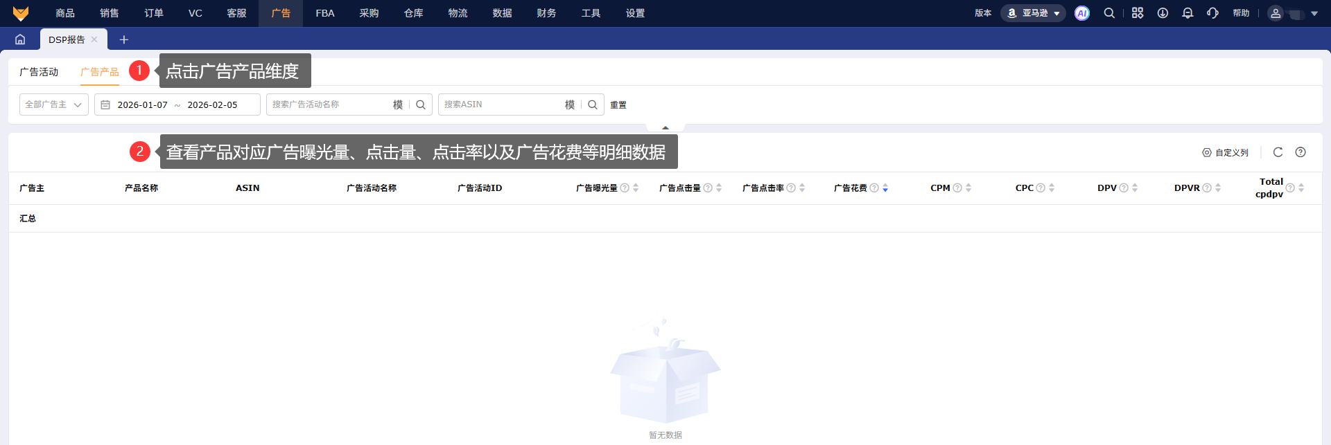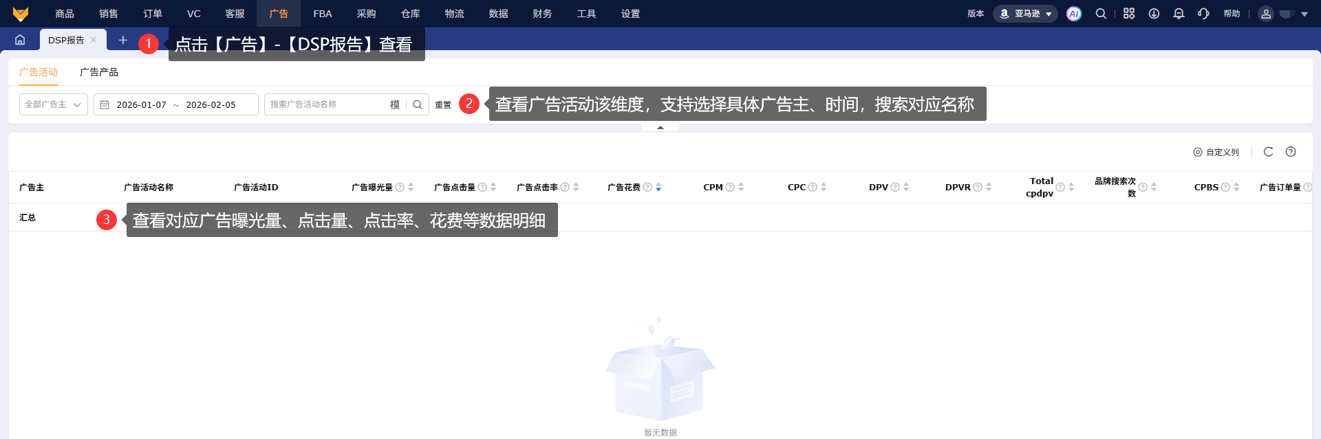 DSP(Demand Side Platform):亚马逊站外广告管理平台,获取数据做可视化图表,便于直观查看站外广告情况,及时针对广告调整、分析。