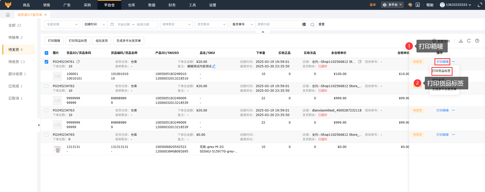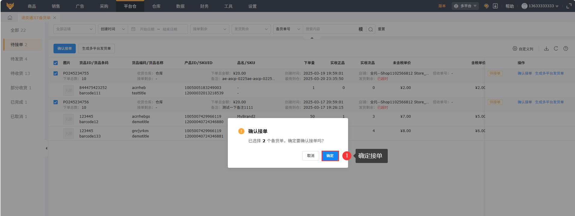 集中查看、管理多个店铺的JIT备货单,支持批量接单发货,提高工作效率,帮助卖家及时处理备货单,防止超时。二、更新频率