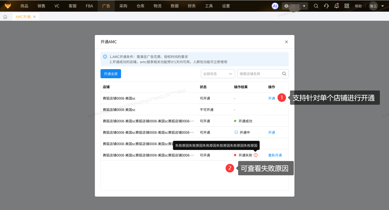 开通AMC功能,开通后可获取AMC搜索词数据以及操作AMC人群包创建。