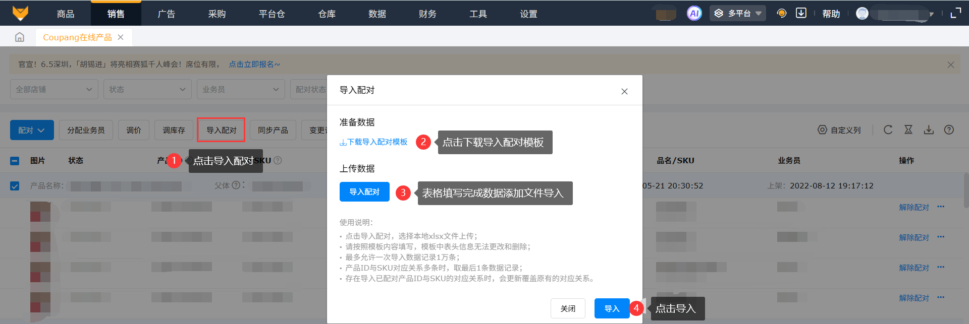 e.存在导入已配对产品ID与SKU的对应关系时,会更新覆盖原有的对应关系。