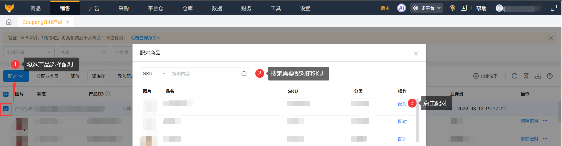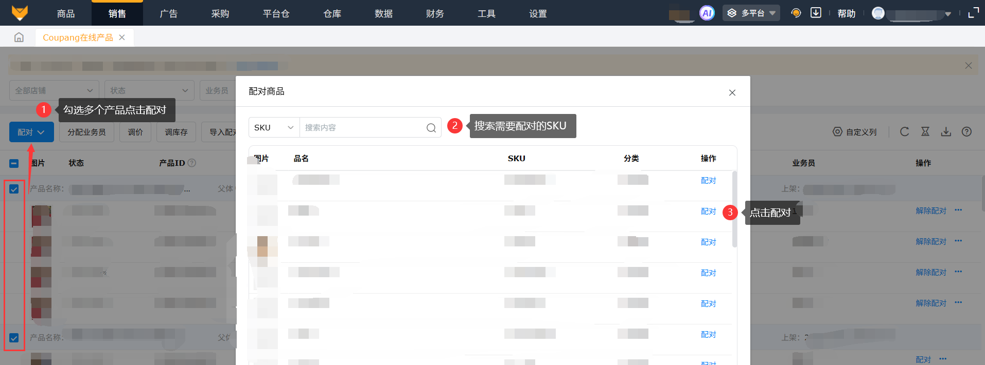 支持勾选多个产品配对同一个系统SKU。