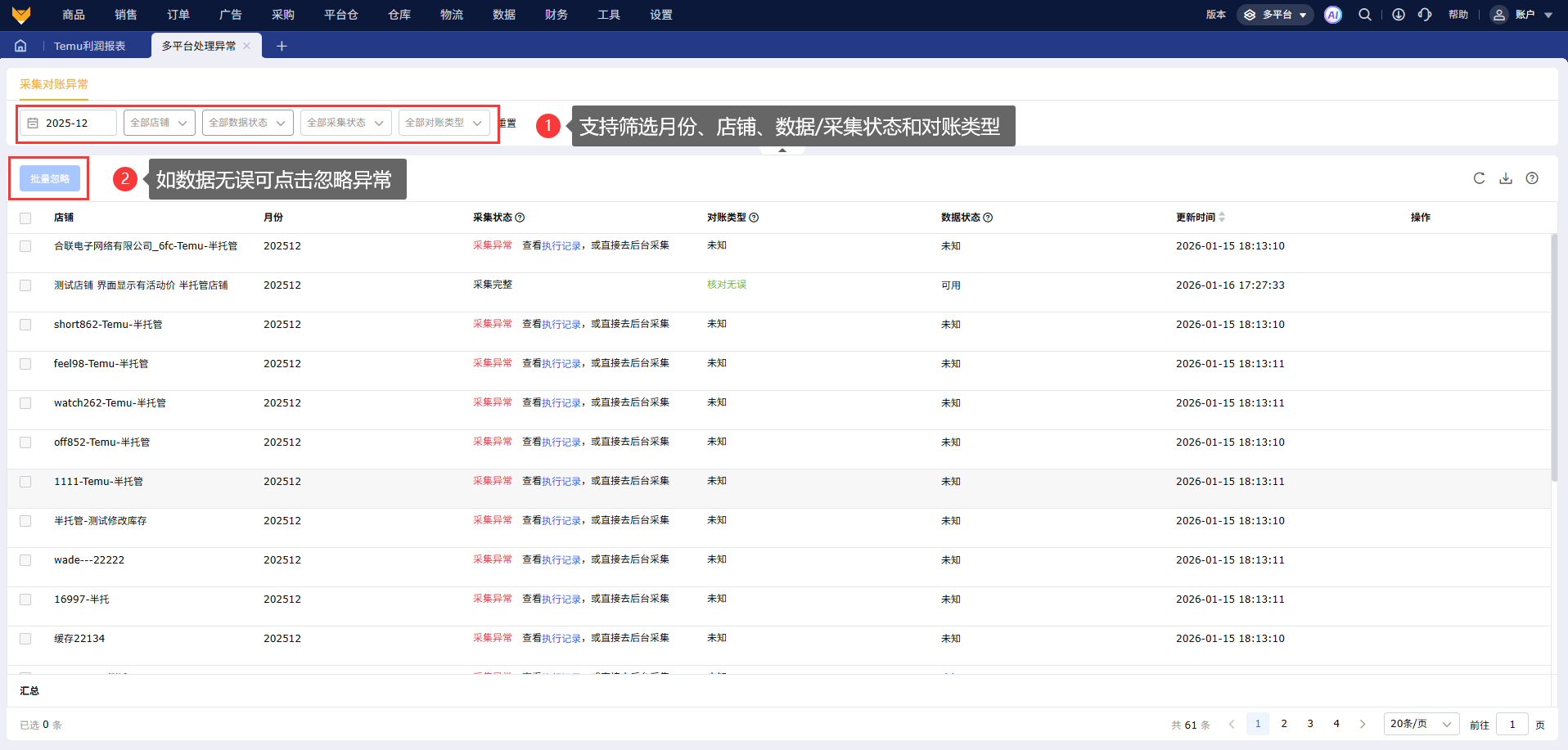 Q2:全托管店铺,采集是完整的,但是为什么会出现对账异常?