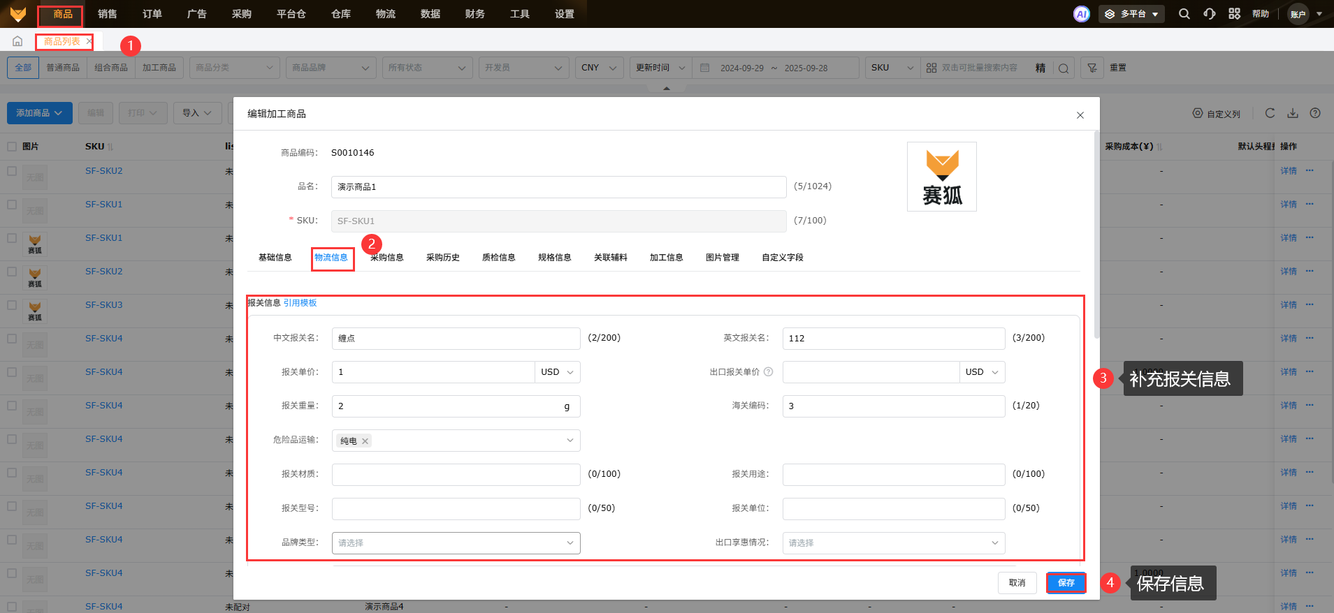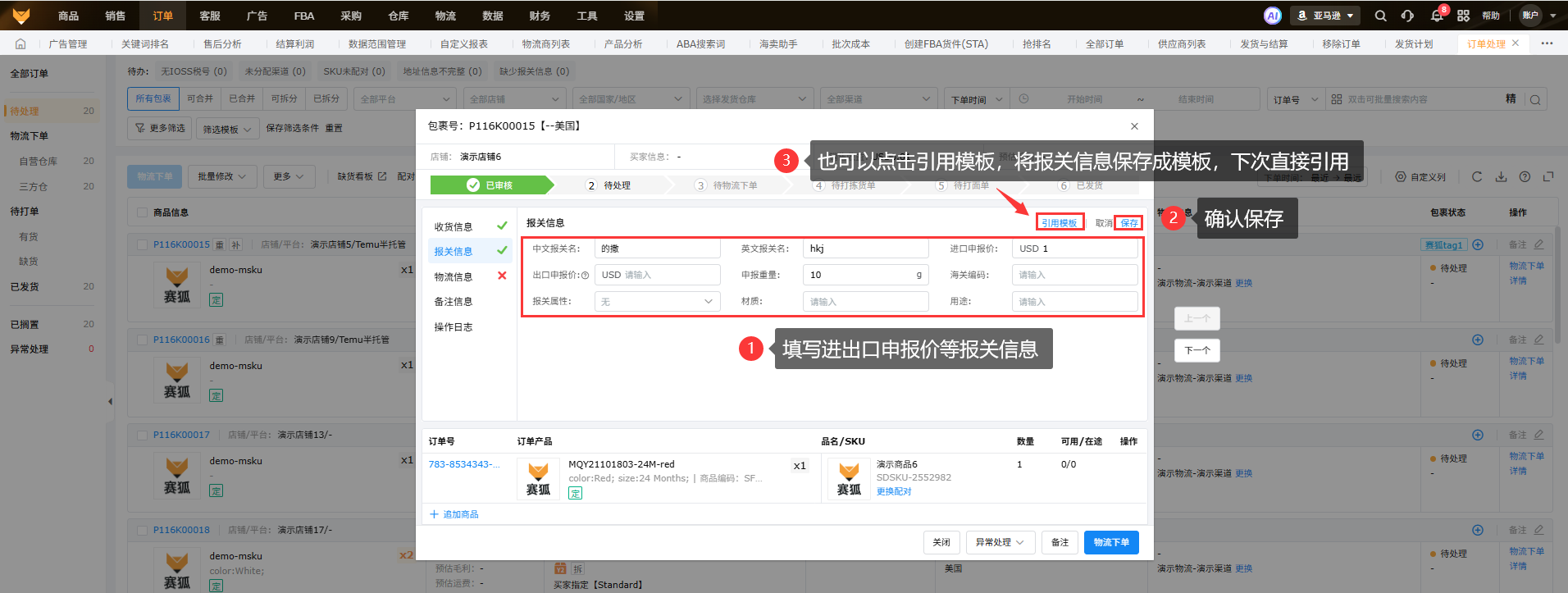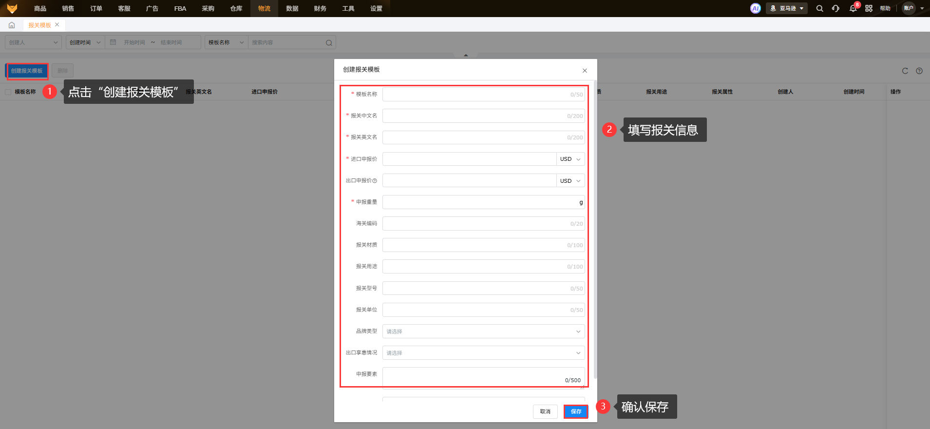 先支持上传企业信息和出口申报价的物流商有:云途、燕文、出口易、速递管家;其他物流商正在对接中,有其他物流商对接需求的可以联系在线客服和实施反馈2、填写商品报关信息