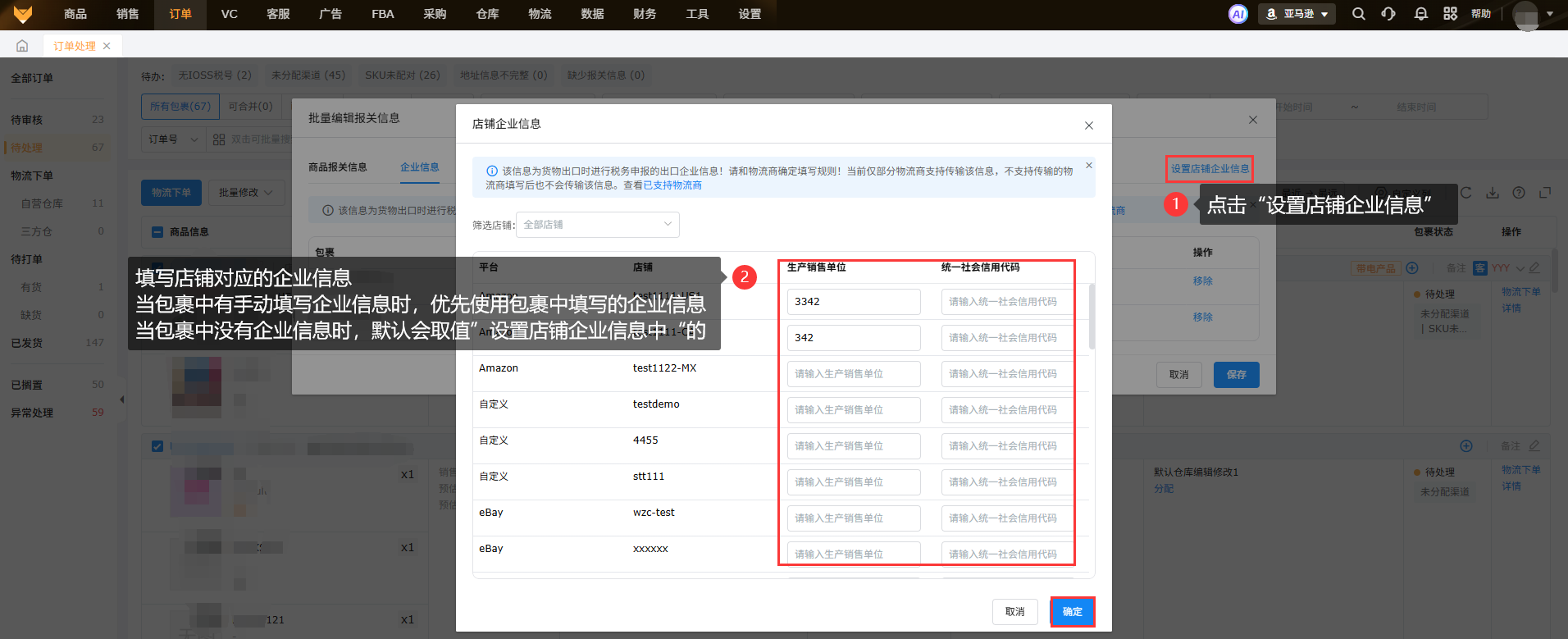 当包裹中有手动填写企业信息时,优先使用包裹中填写的企业信息,当包裹中没有企业信息时,默认会取值“设置店铺企业信息中“的