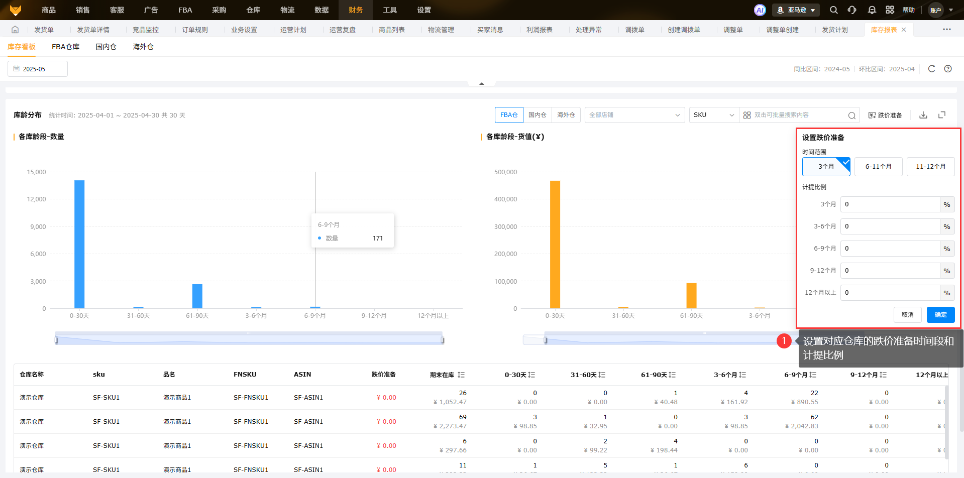通过设置不同账龄区间的计提比例,计算跌价金额,体现预计可能跌价的金额,方便客户针对性提前促销,减少损失。