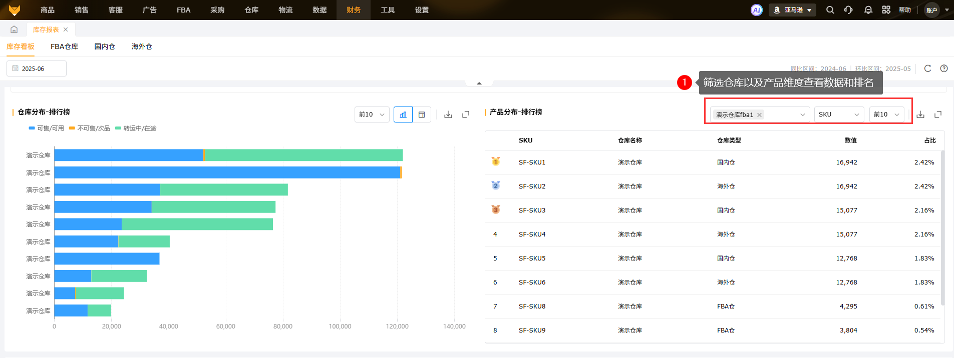 Q1:产品分布排行榜中的占比是占对应仓库的吗?A1:占比是指在总仓库的占比值。