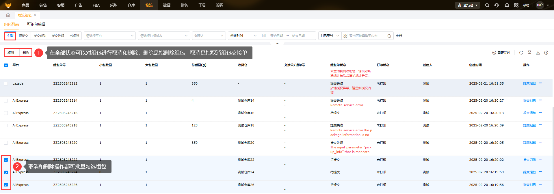 2.3取消和删除组包单