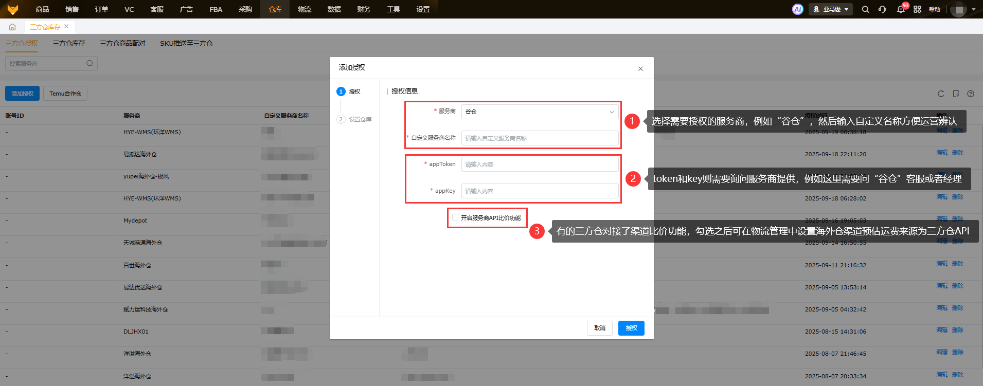 或者三方仓支持API比价功能并且在授权三方仓时有开启此功能的话,可以从三方仓服务商API接口获取比价信息;