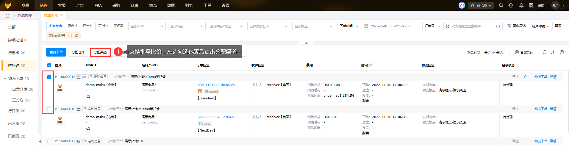 物流比价可以根据商品尺寸、重量、目的地、配送时效等,智能匹配并比较不同物流渠道的报价,帮助卖家选择性价比更高的尾程渠道发货。