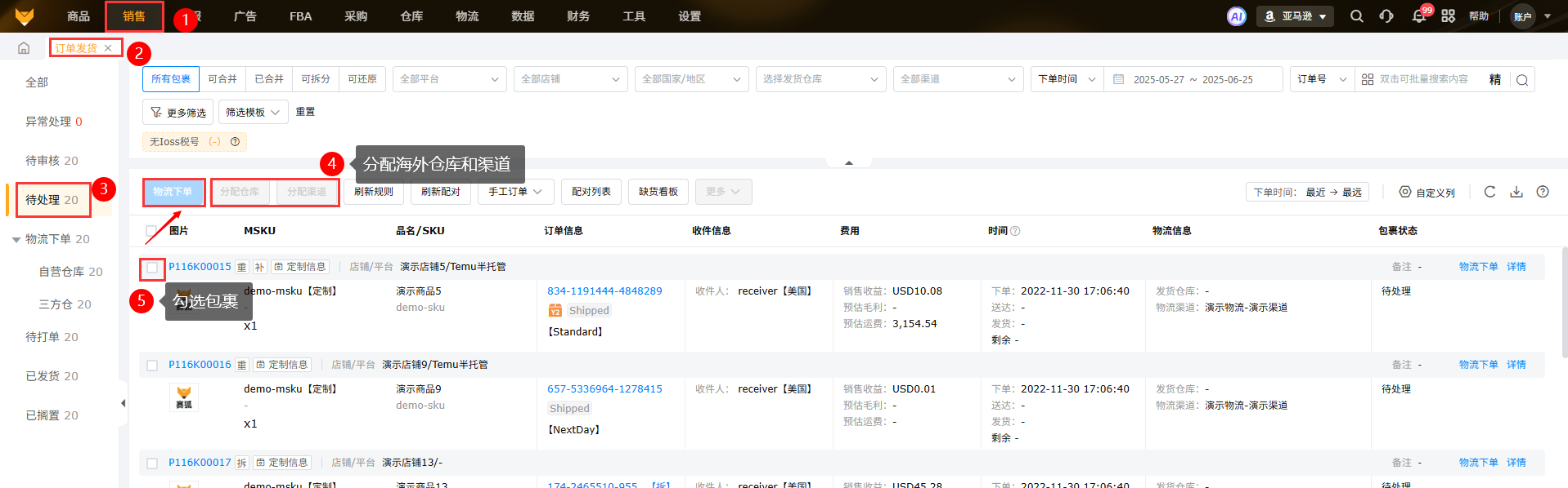 【销售-FBM订单发货-待处理-分配仓库和分配渠道-物流下单】