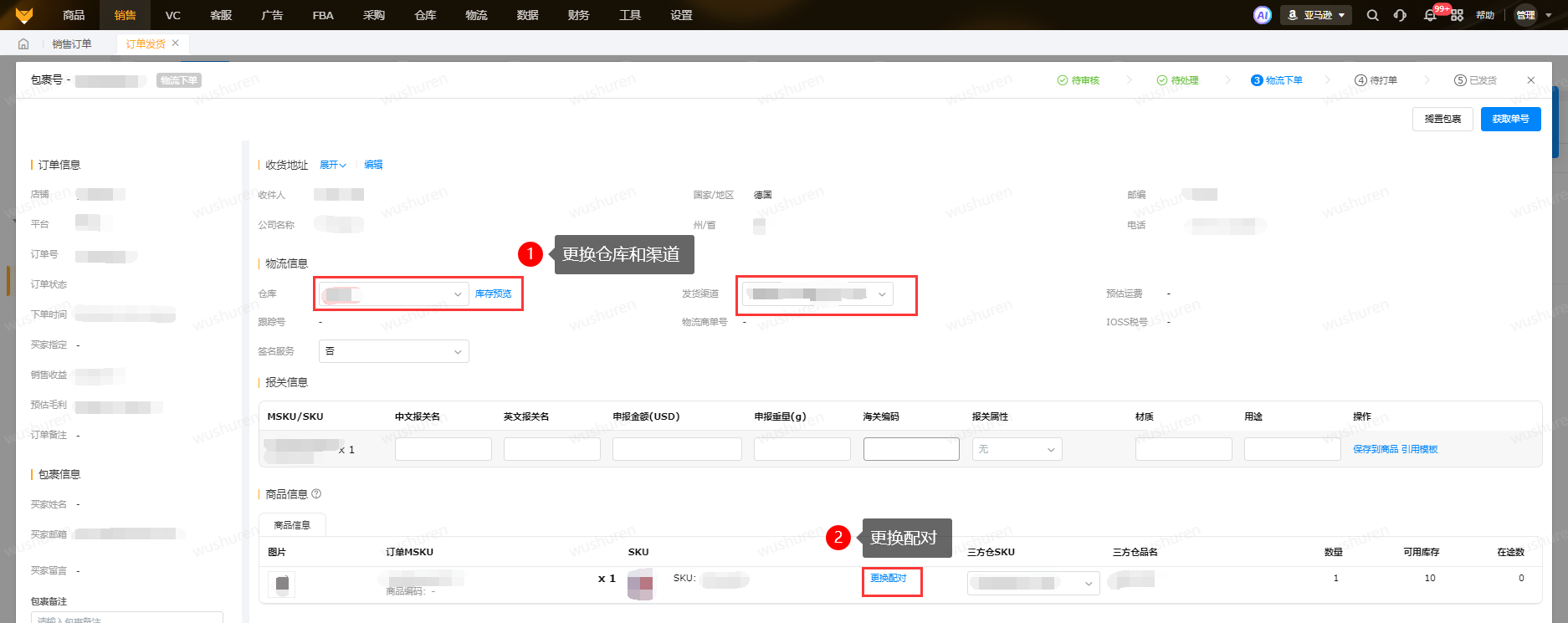 【物流下单—三方仓-失败】支持更换仓库、更换渠道、更换商品配对。更换配对时,追加的商品也可以更换配对关系,以及更换后需要变更报关信息。