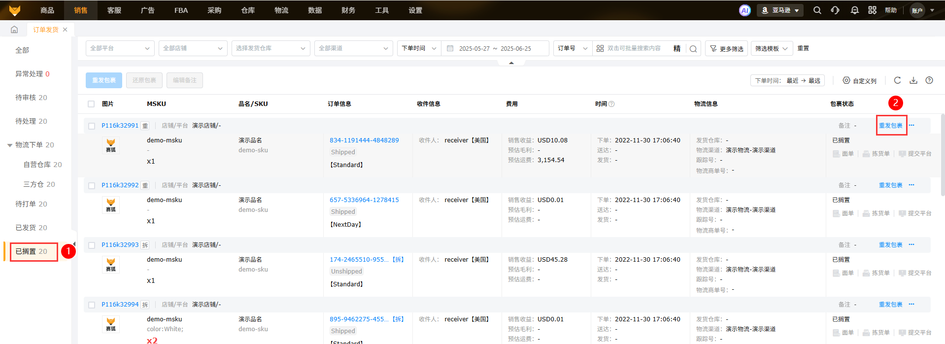 已搁置包裹,支持重发包裹,生成后到【待处理】页面下单。