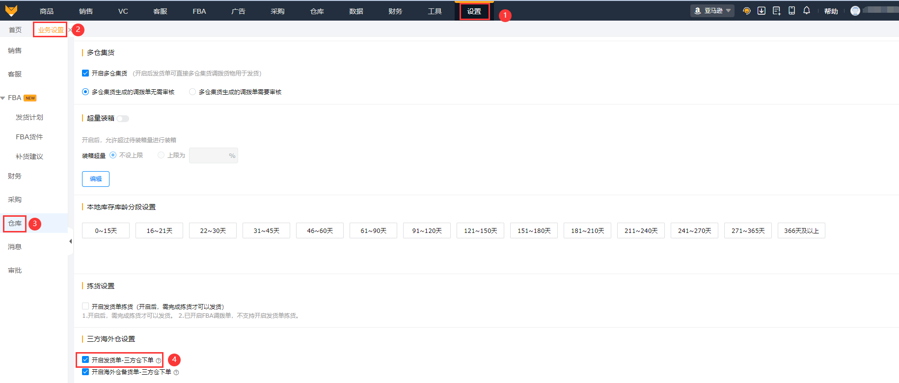 【设置-业务设置-三方海外仓设置-勾选开启海外发货单-三方仓下单】