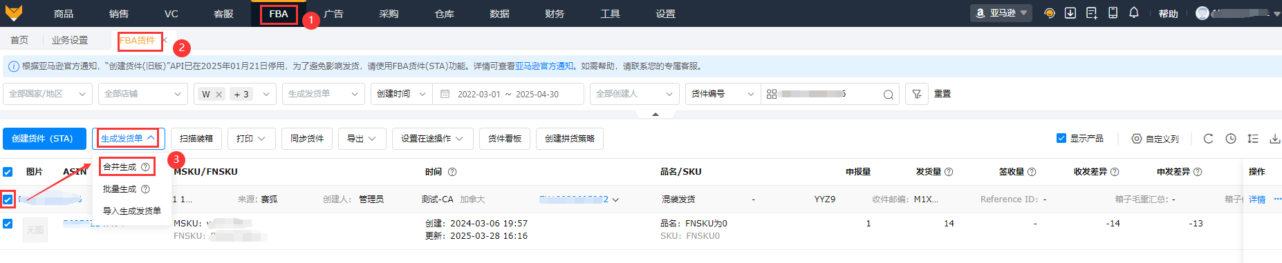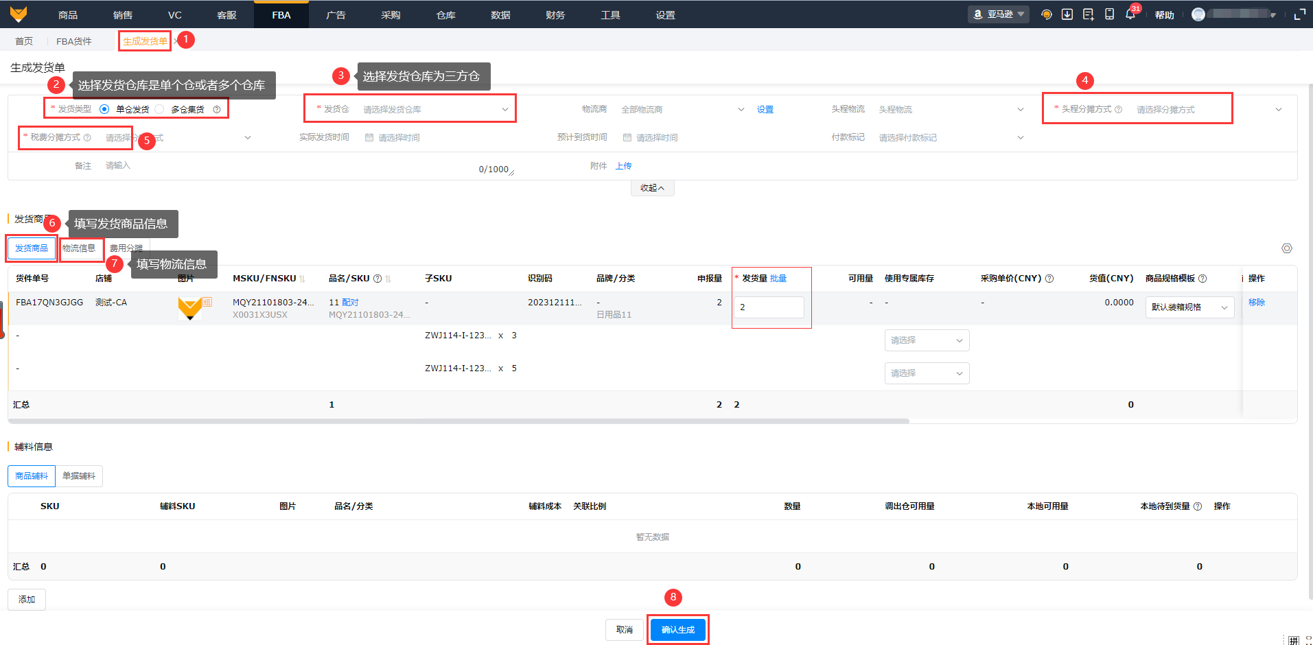 【FBA-FBA货件-勾选FBA货件“生成发货单”-填写发货单“*”必填】