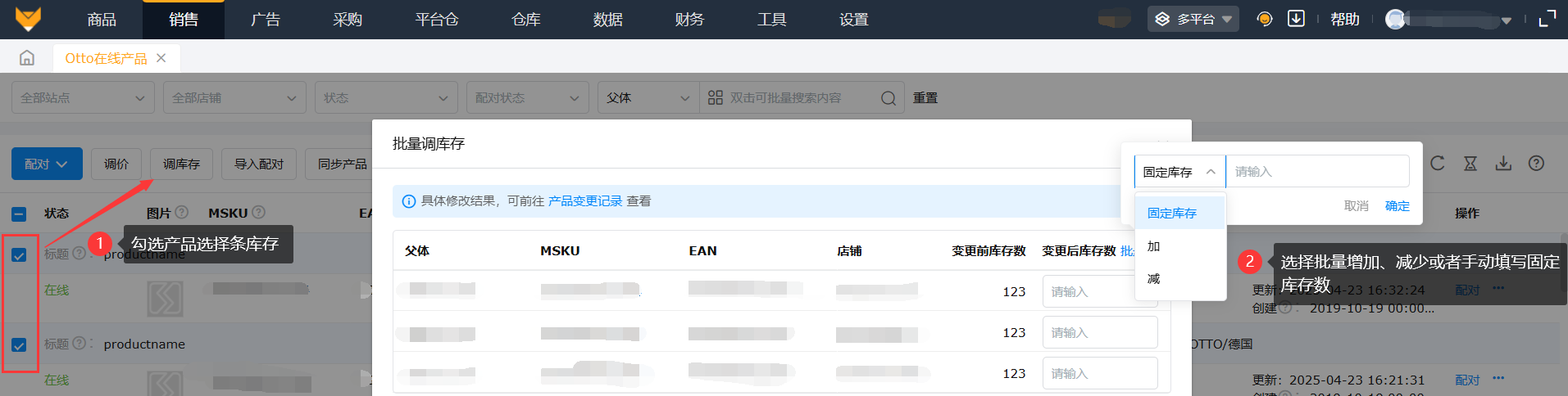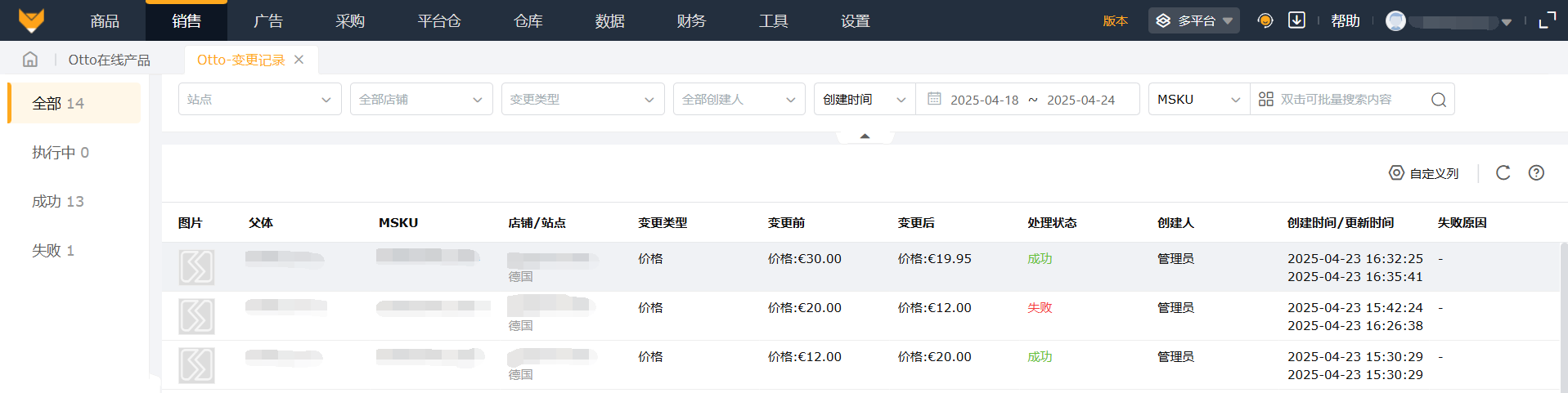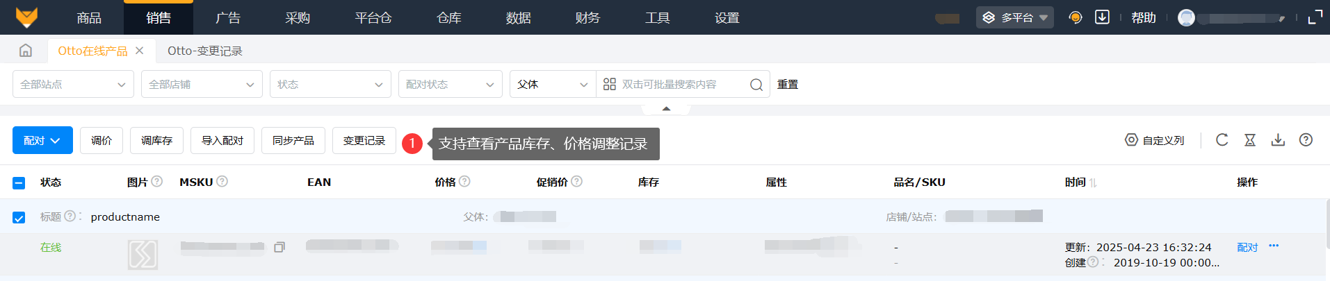 在系统完成授权店铺之后,在线产品页面会显示已授权Ozon店铺产品MSKU列表;