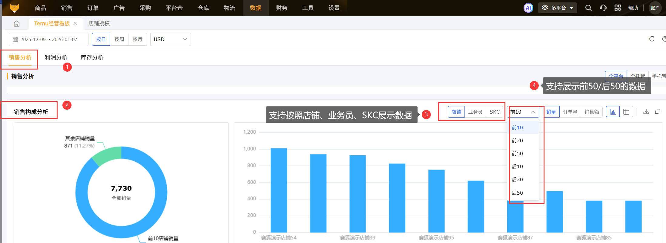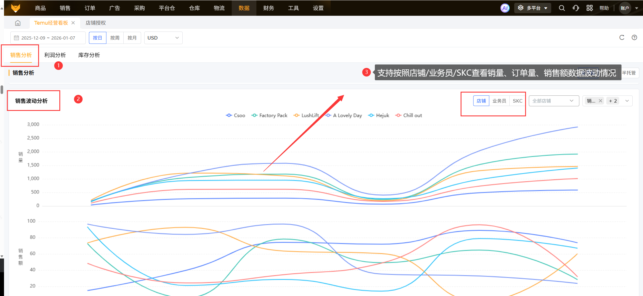 从销售、利润、库存三大核心业务板块综合分析Temu全平台数据情况。