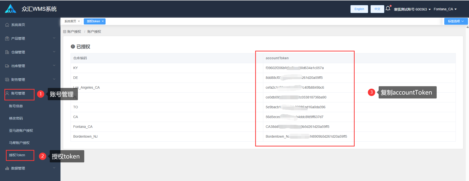 (2)海外仓后台获取授权信息:账号管理-授权Token;