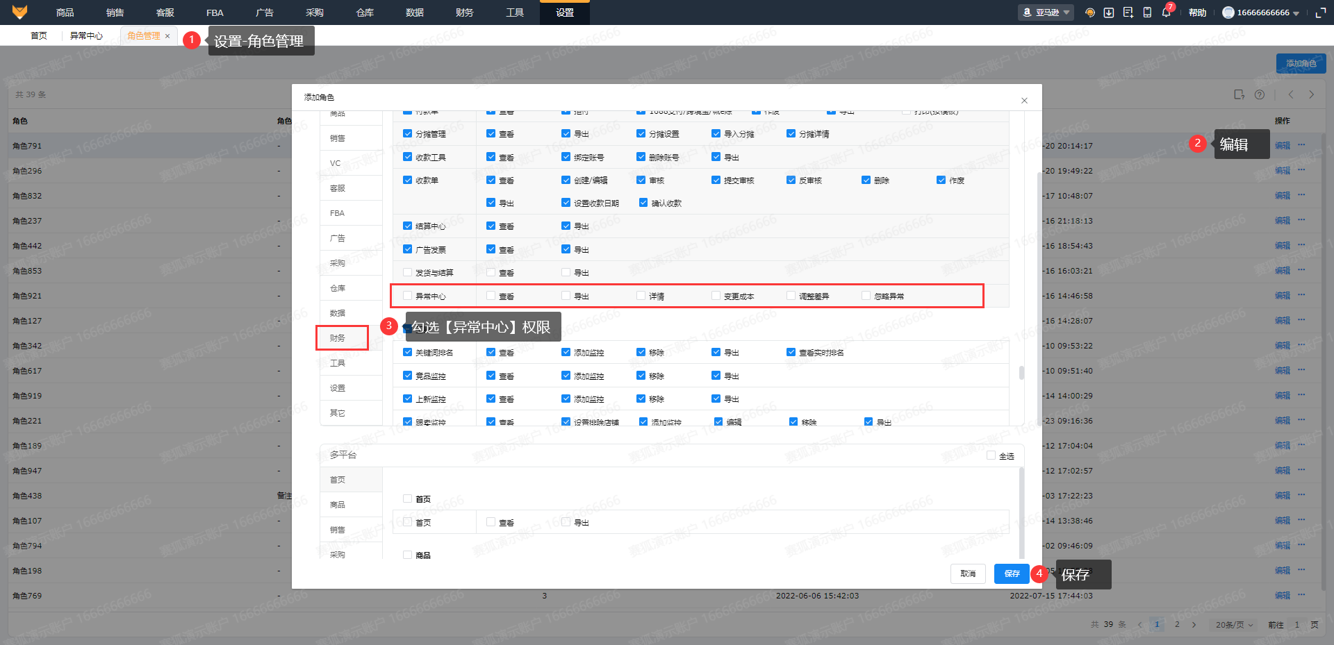 通过【设置】-【角色管理】,开启对应异常中心页面的查看及操作权限
