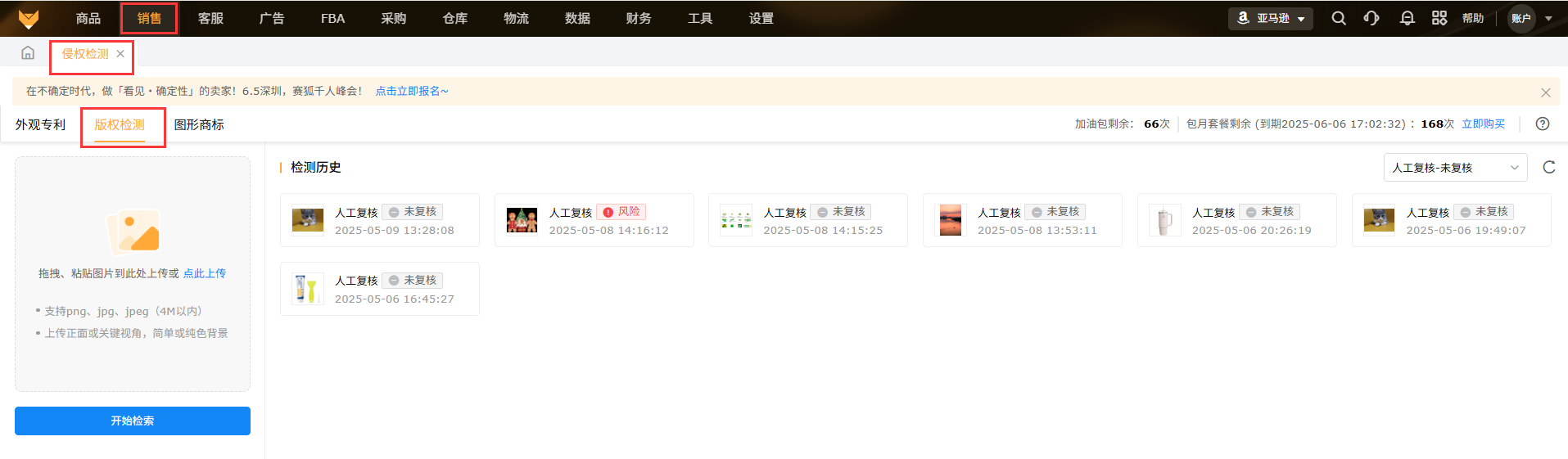 入口:【销售】-【侵权检测】-【版权检测】