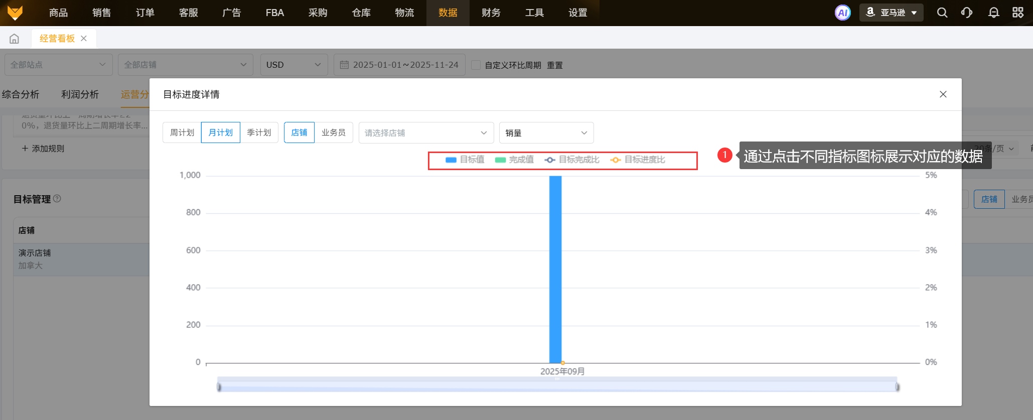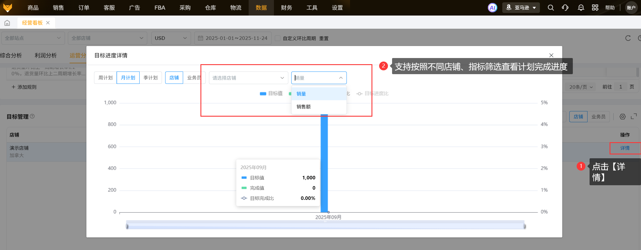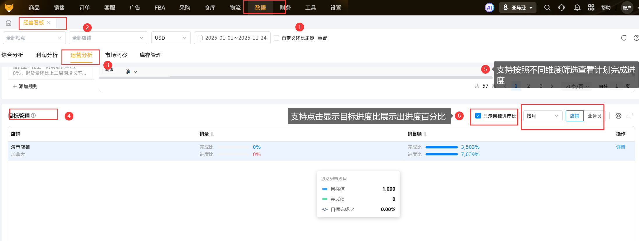 目标任务数据来源【销售】-【运营计划】,仅统计本年度运营计划里面设置的目标数据;