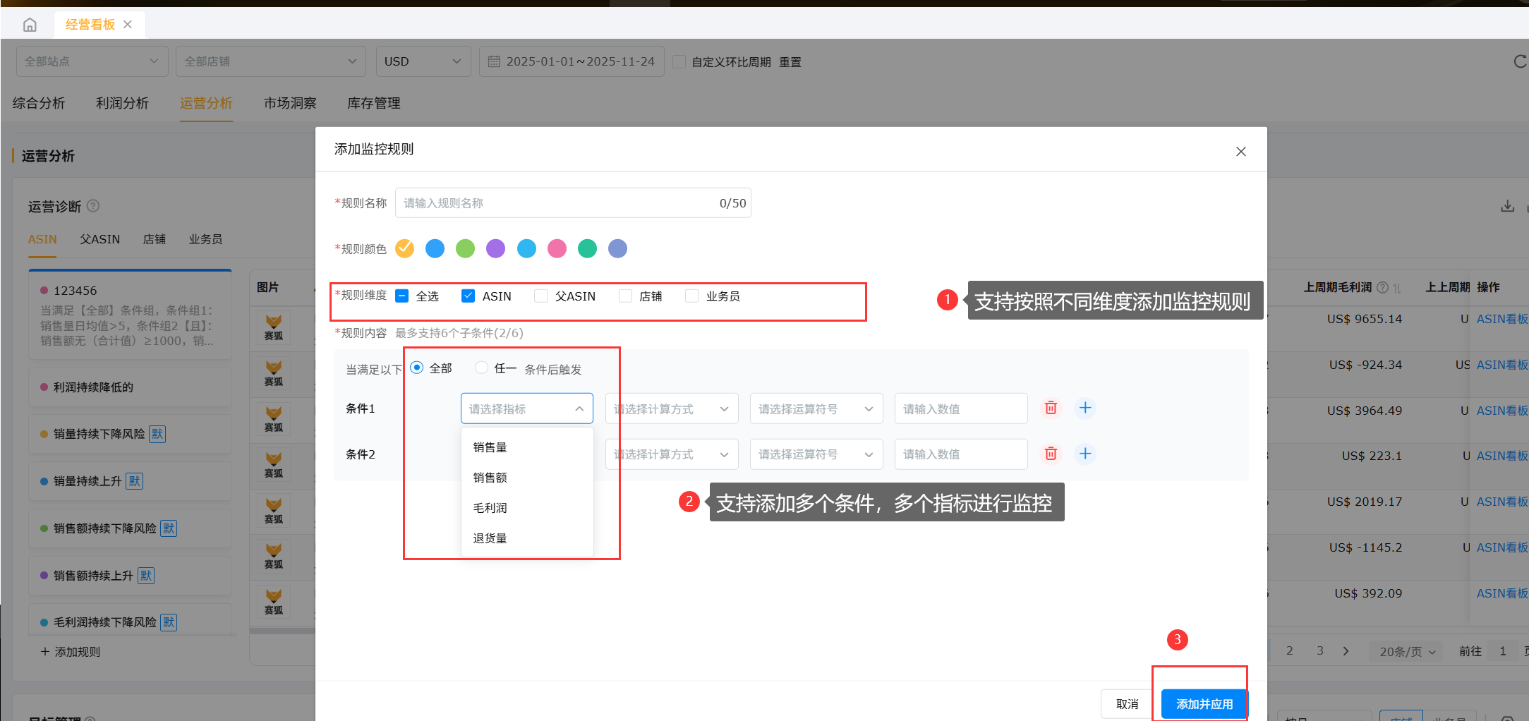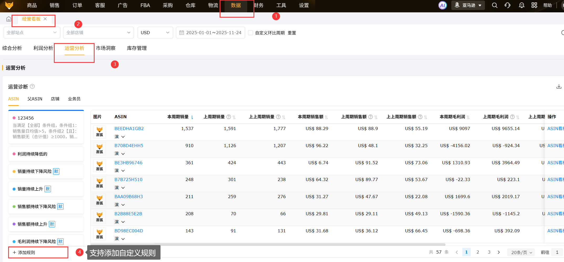 设置自定义规则便于运营及时监控ASIN的数据表现
