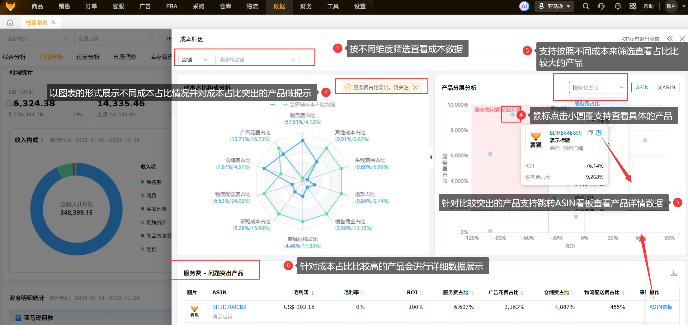 直观呈现成本占比,帮助客户快速定位成本问题