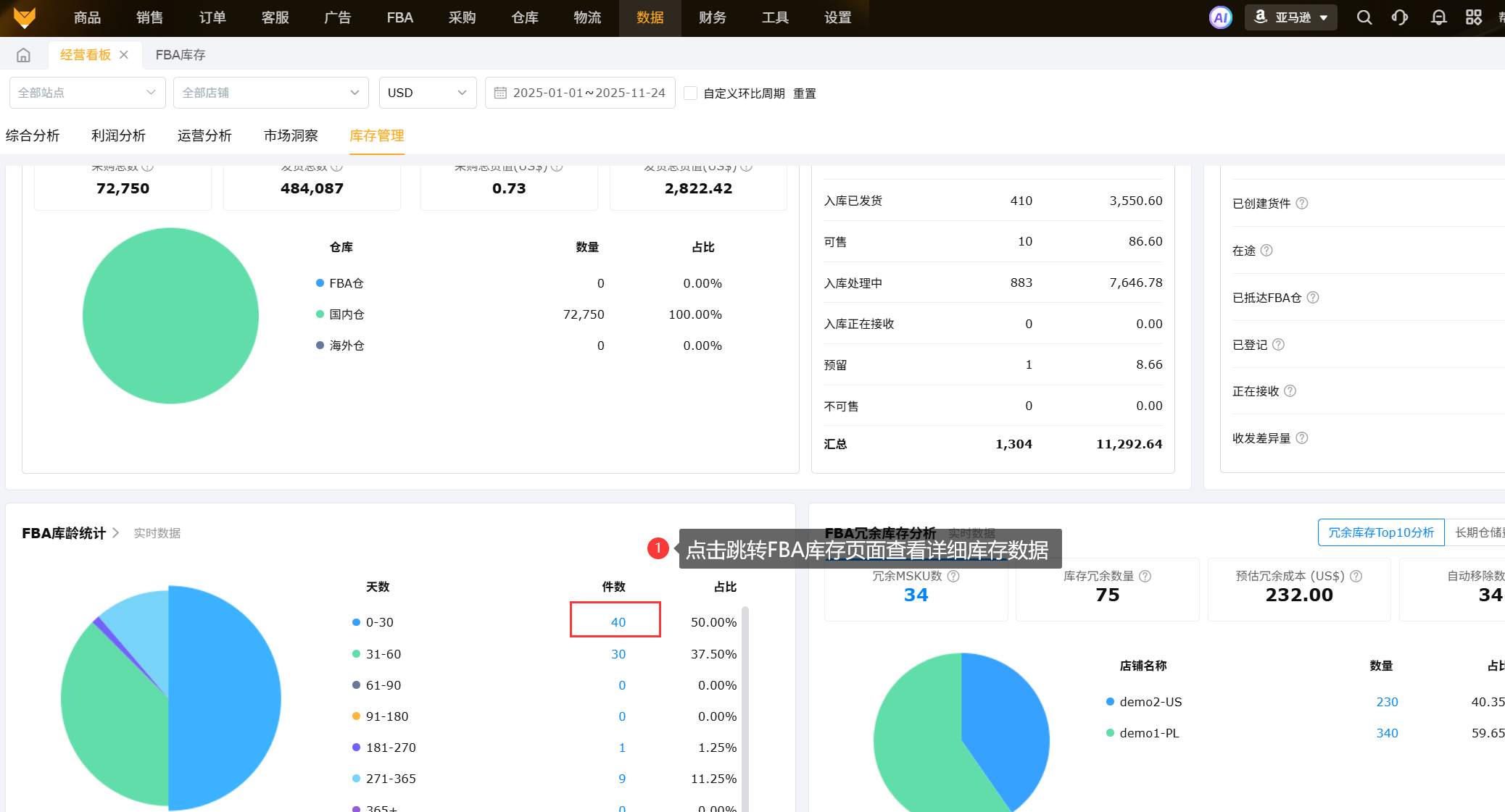 (3)FBA库龄统计