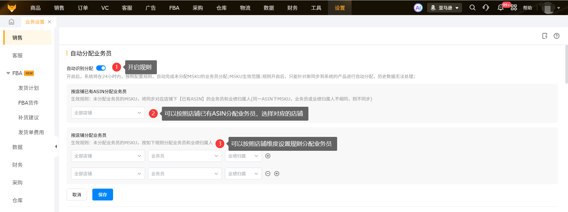 设置匹配规则,符合规则系统自动给产品分配业务员。