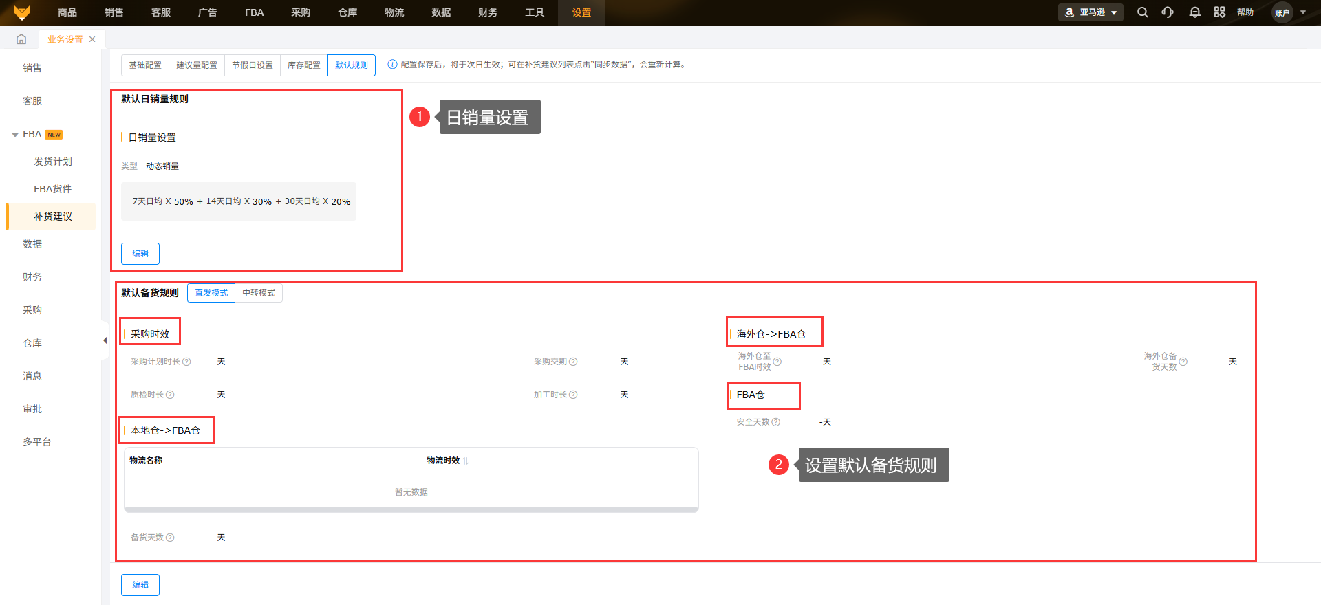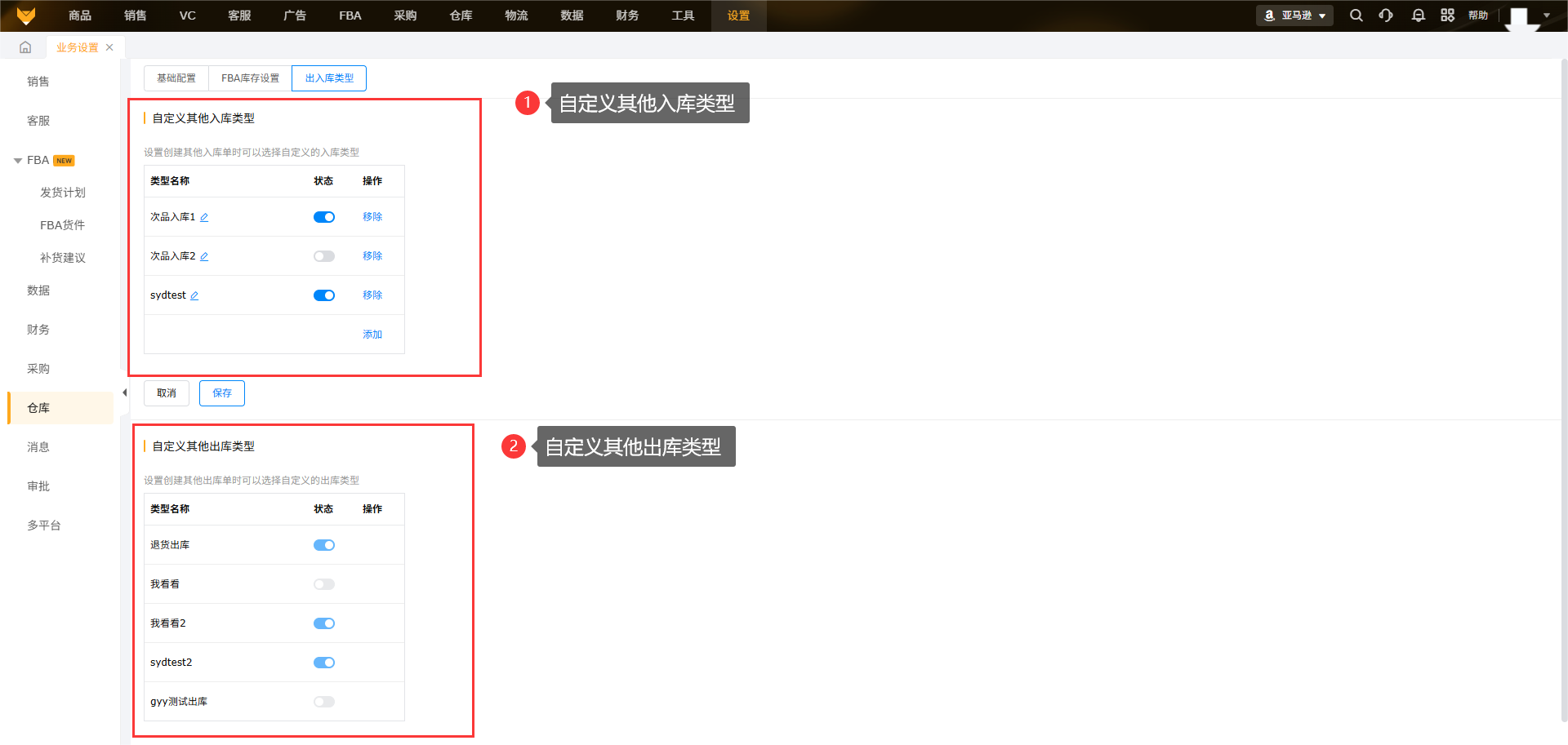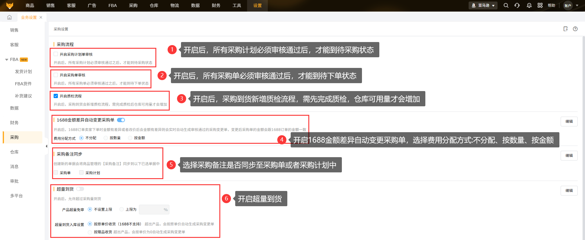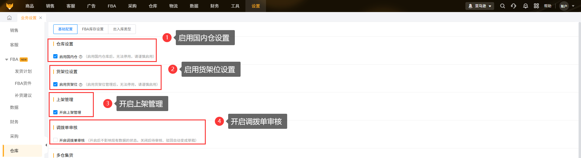 不启用国内仓,无法开启调拨单;开启后,发货单需要通过FBA调拨单生成。