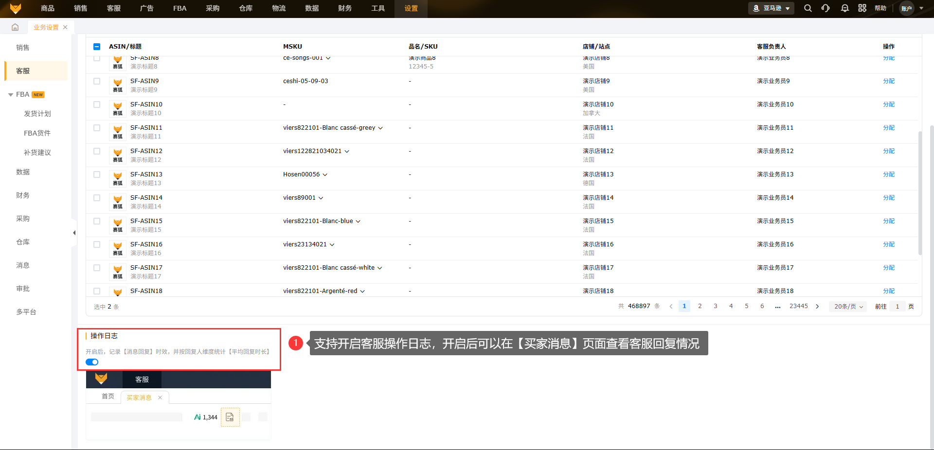 支持按产品按店铺指定客服负责人,分配负责人后,对应产品的买家消息会分配给指定的人进行回复;