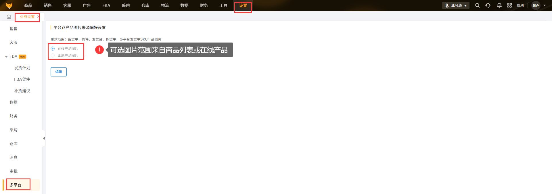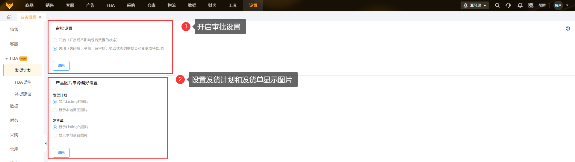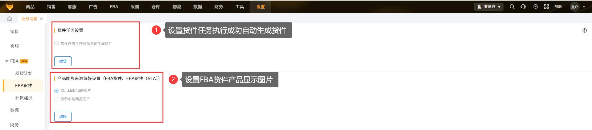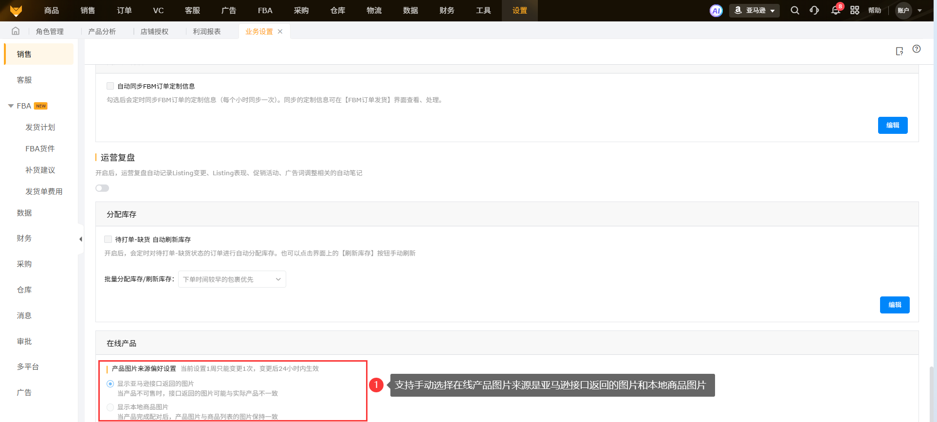 (2)产品图片来源偏好设置(FBA货件、FBA货件(STA));