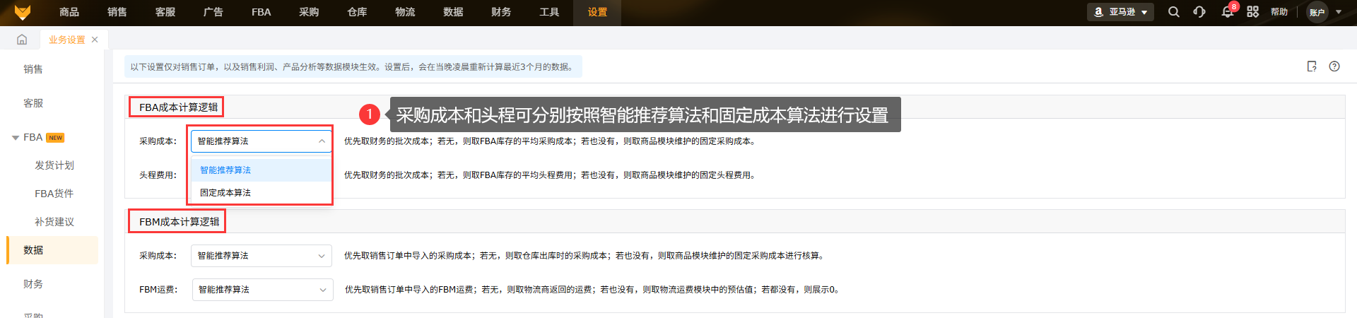 4.1成本计算逻辑智能推荐算法:只能优先取财务的批次成本;若无,则取FBA库存的平均头程费用;若也没有,则取商品模块维护的固定头程费用。