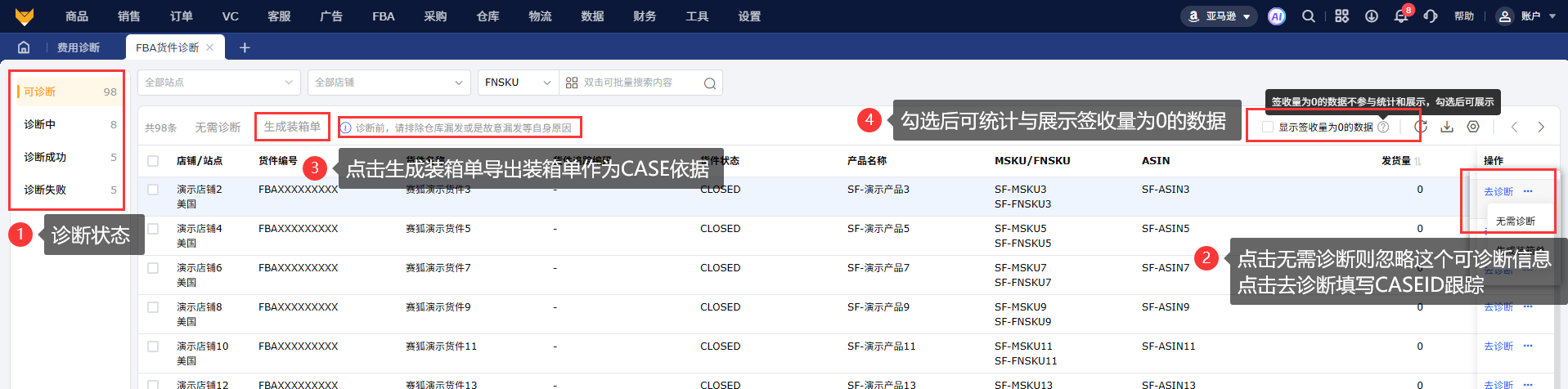 3、FBA货件差异诊断详情