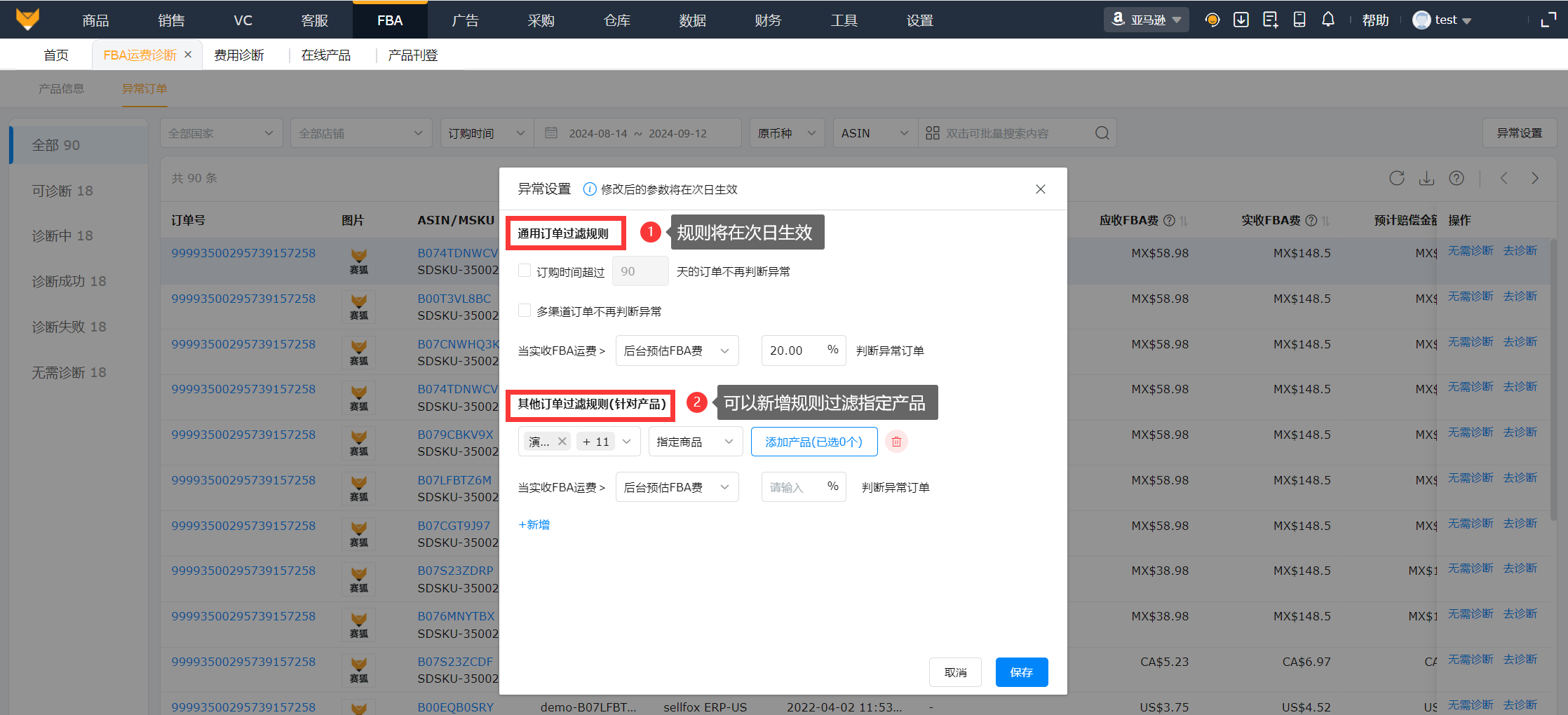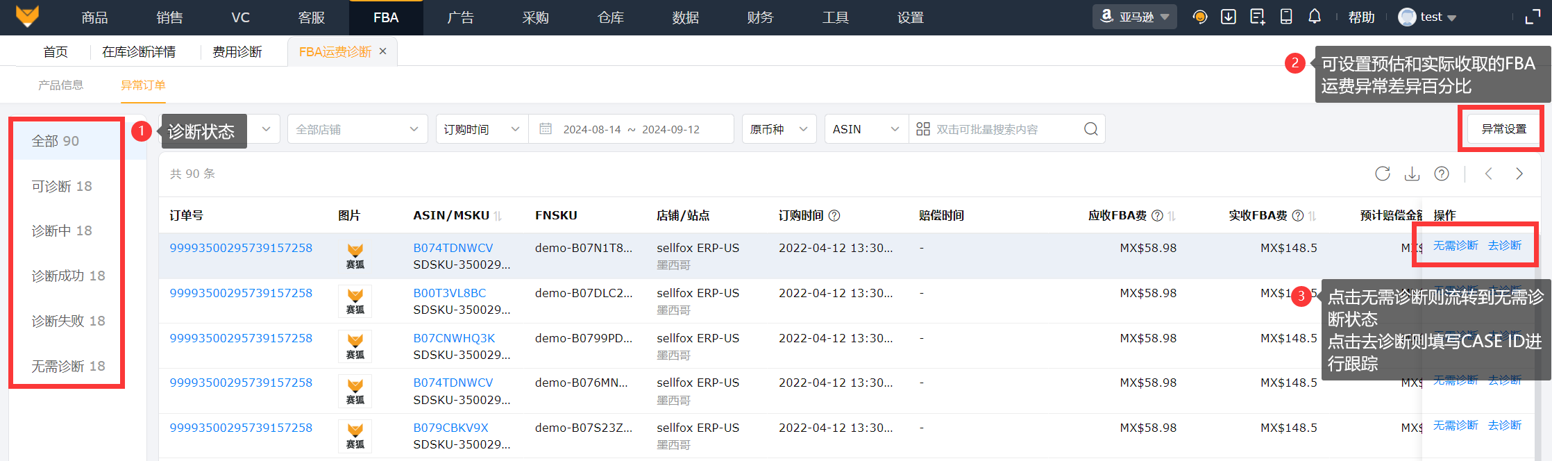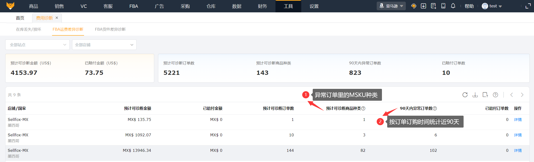 2、FBA运费差异诊断详情