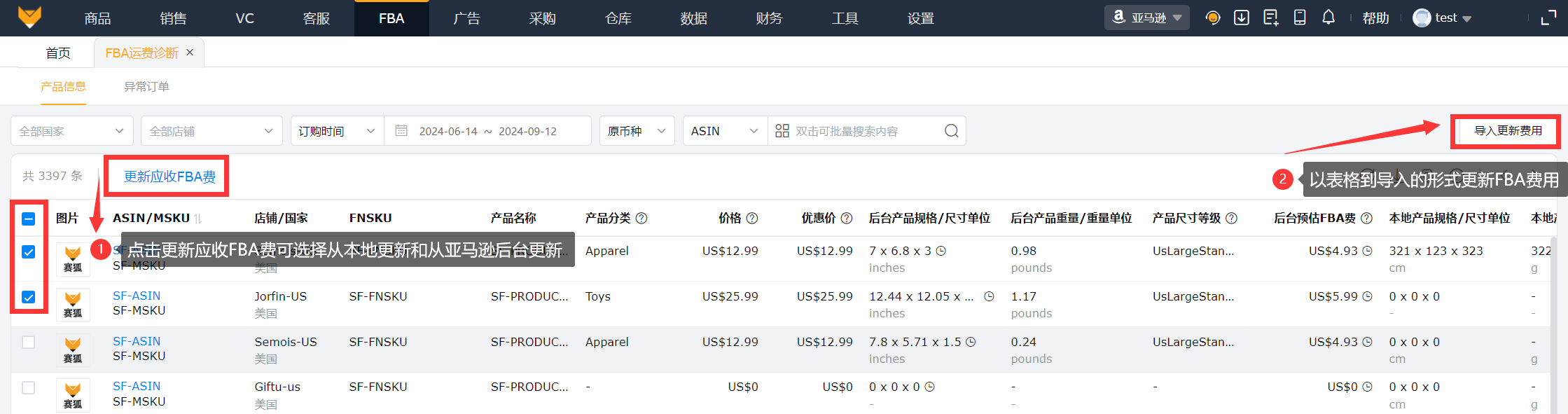 3、FBA运费差异:每天更新一次,更新最近2天的订单。