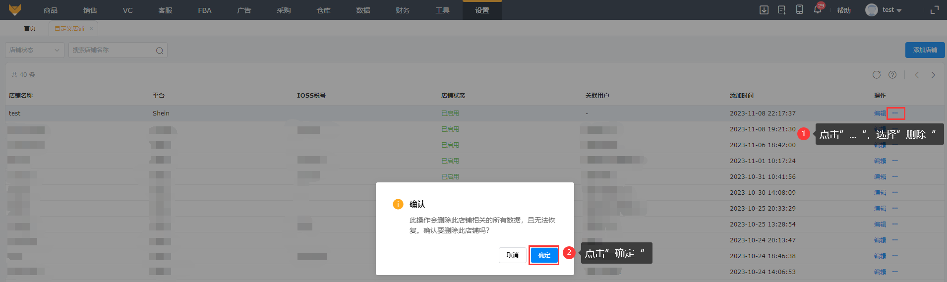 支持编辑修改店铺名称、IOSS税号和关联用户。