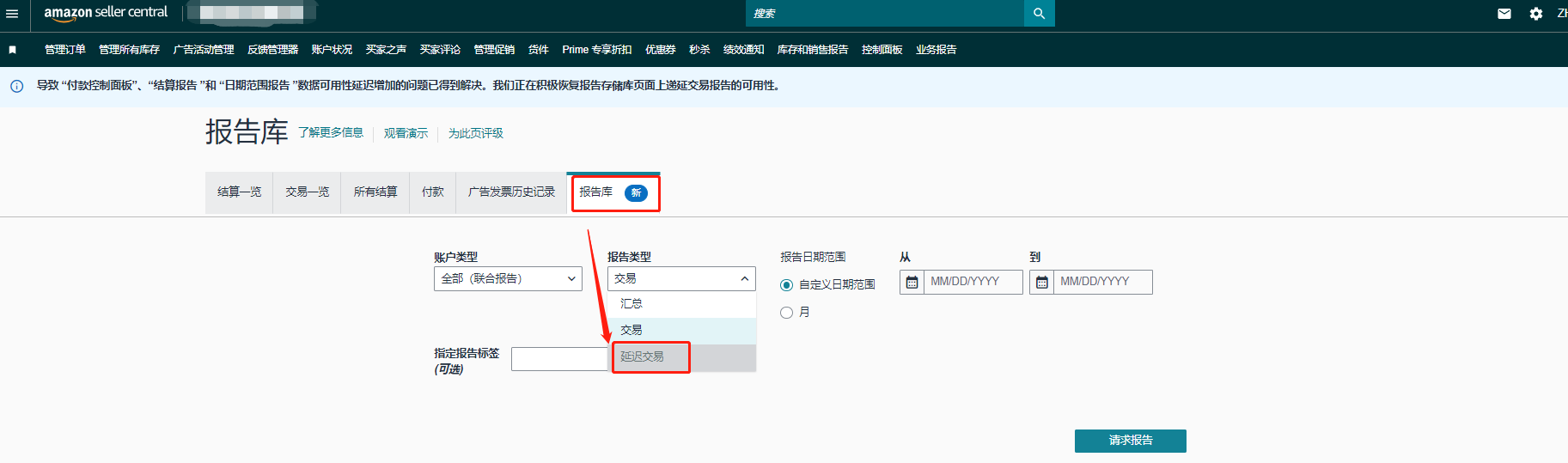 付款报告库一报告库一延迟交易。