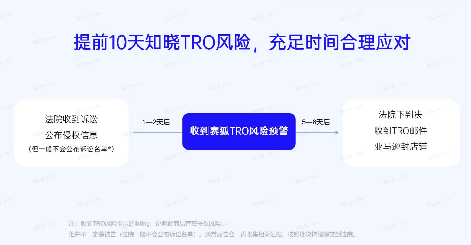 TRO风险预警,能全网自动更新TRO数据,对于有侵权风险的商品,提前收到预警提醒,以便卖家有更充足的时间做足准备,合理应对。