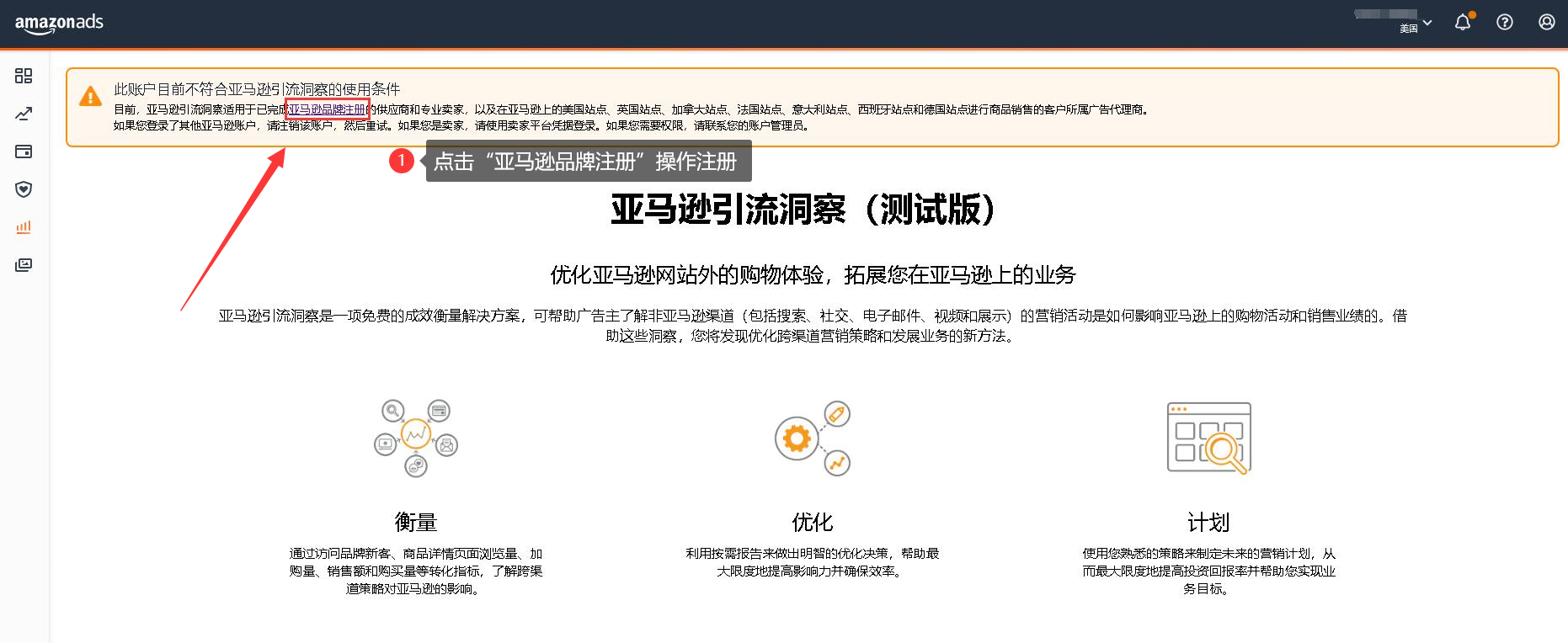 (2)注册亚马逊引流洞察(如果尚未注册)。