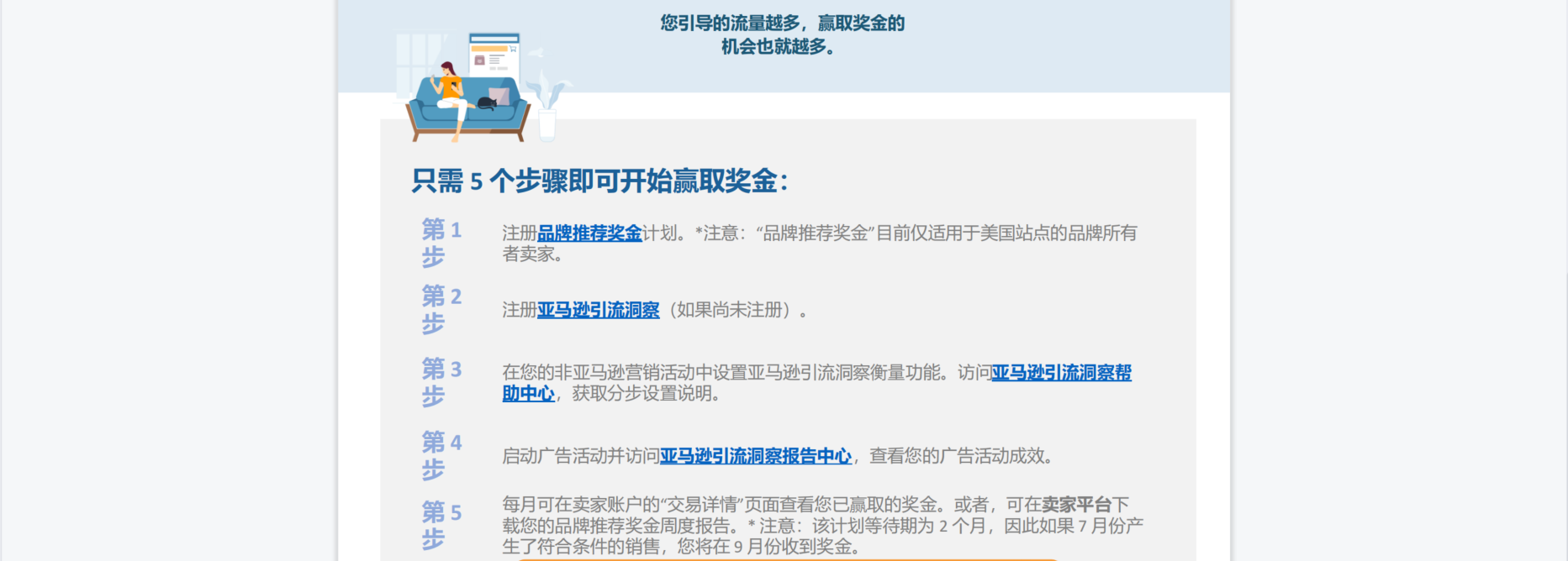 注意:“品牌推荐奖金”目前仅适用于美国站点的品牌所有者卖家。