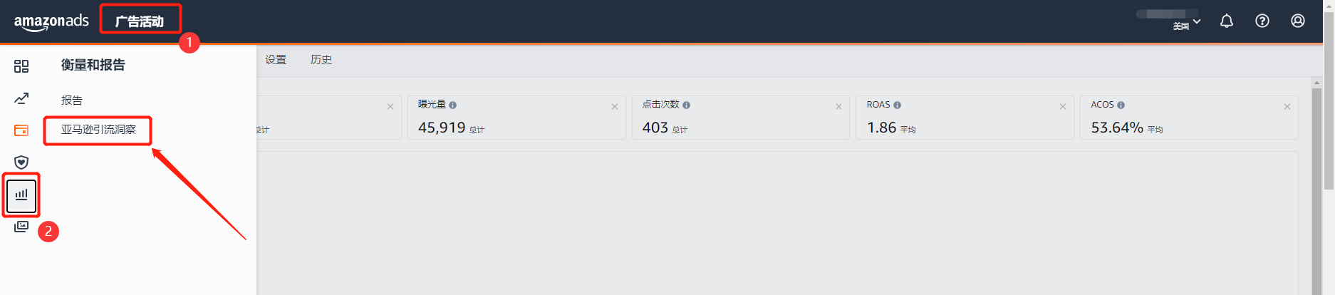 (4)启动广告活动并访问亚马逊引流洞察报告中心,查看您的广告活动成效。