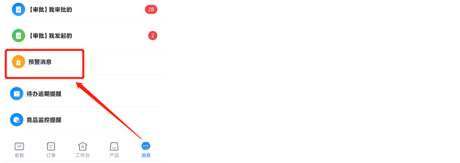 入口:(1)PC端右上角小铃铛-【预警消息】(2)【工具】-【预警消息】(3)微信服务号提醒。