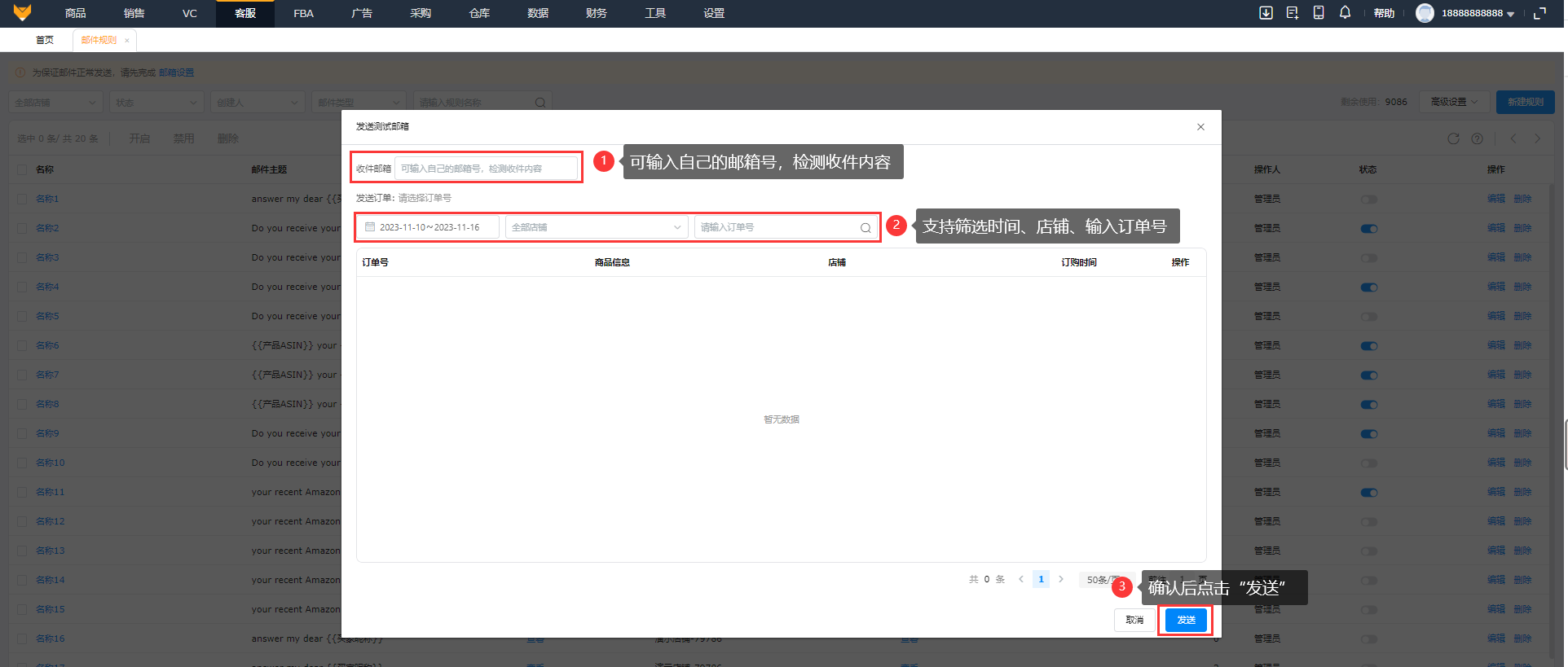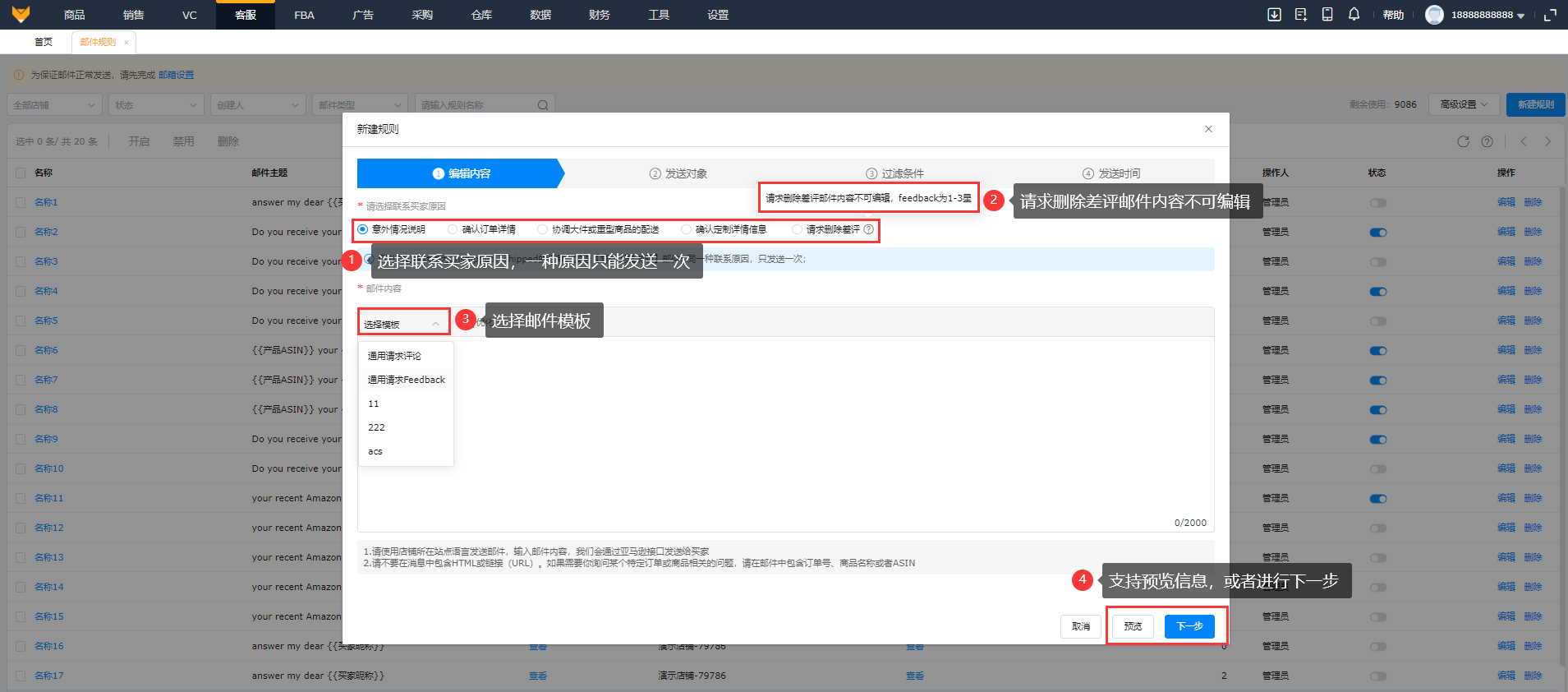 (1)支持自定义发送内容,自定义发送规则。编辑发送规则筛选过滤无效邮件。