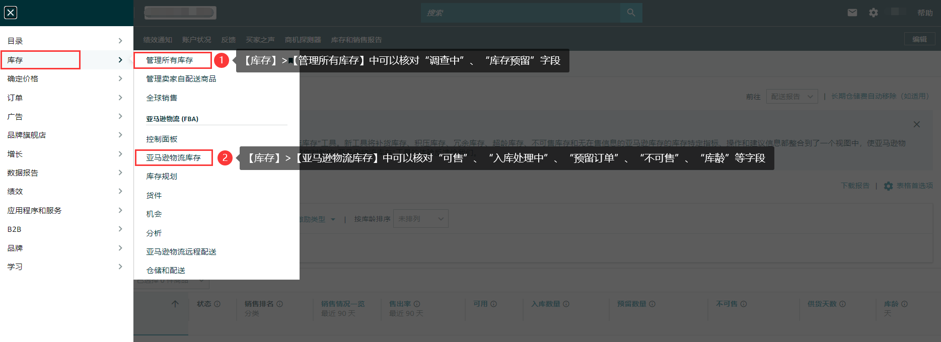 预留运转:亚马逊物流库存>预留数量>亚马逊运营中心转运