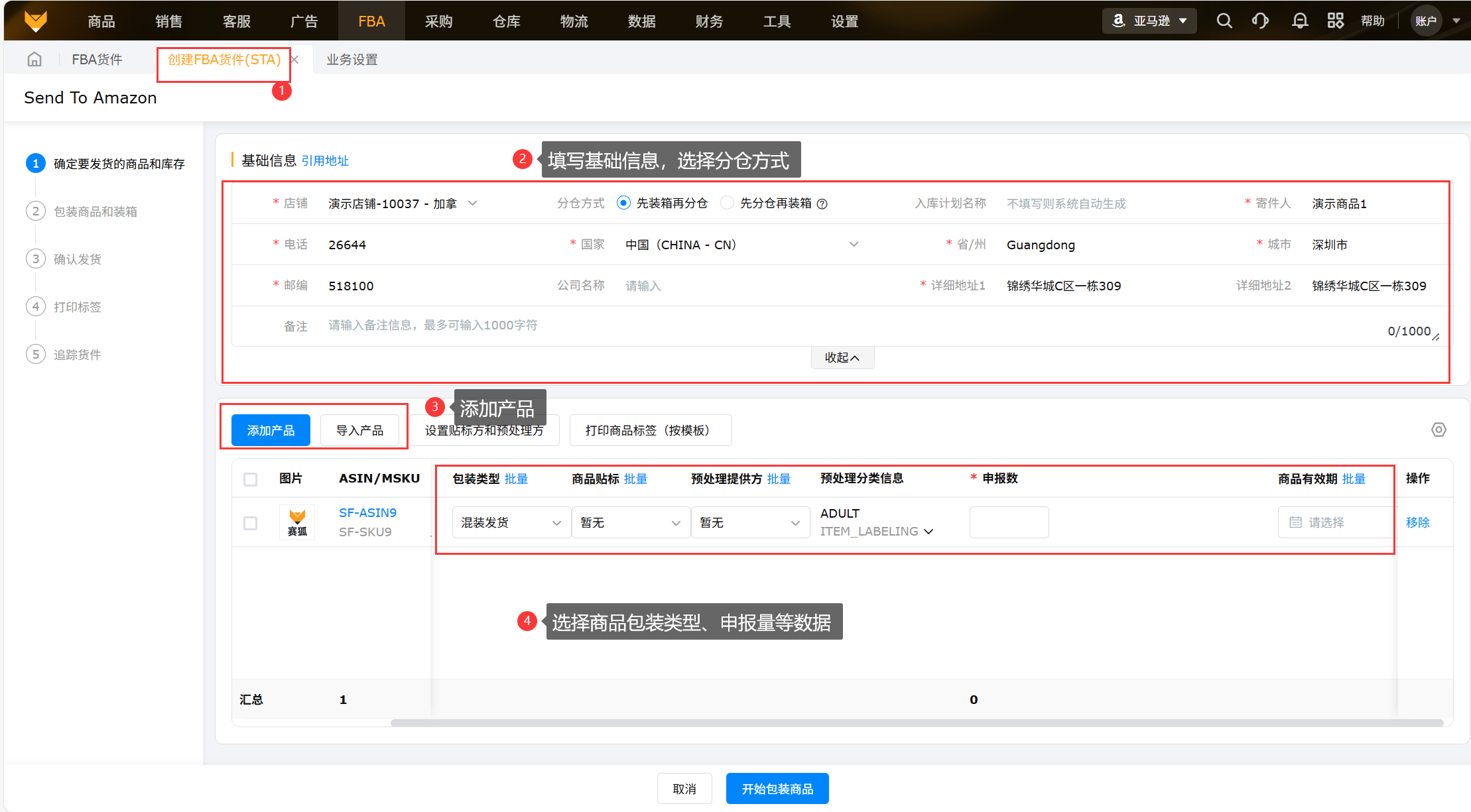 FBA货件等同于亚马逊的shipment,在系统创建的FBA货件能够同步到亚马逊后台,操作一系列的流程直至标记发货。