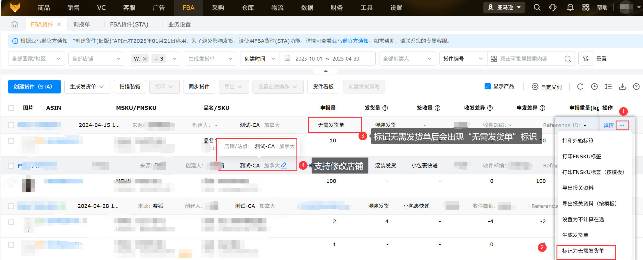 注意:根据亚马逊官方公告:如果通过ERP创建货件,则需要在ERP编辑并完成货件发送工作,不要在卖家平台做任何操作。两边操作,容易产生数据缺失等问题,导致货件上架异常!点击查看【FBA货件常见报错】
