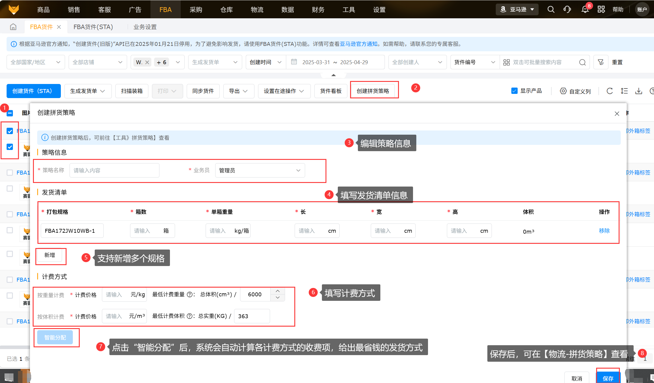 FBA货件支持创建拼货策略,计算货件最佳发货方式,节省物流成本。
